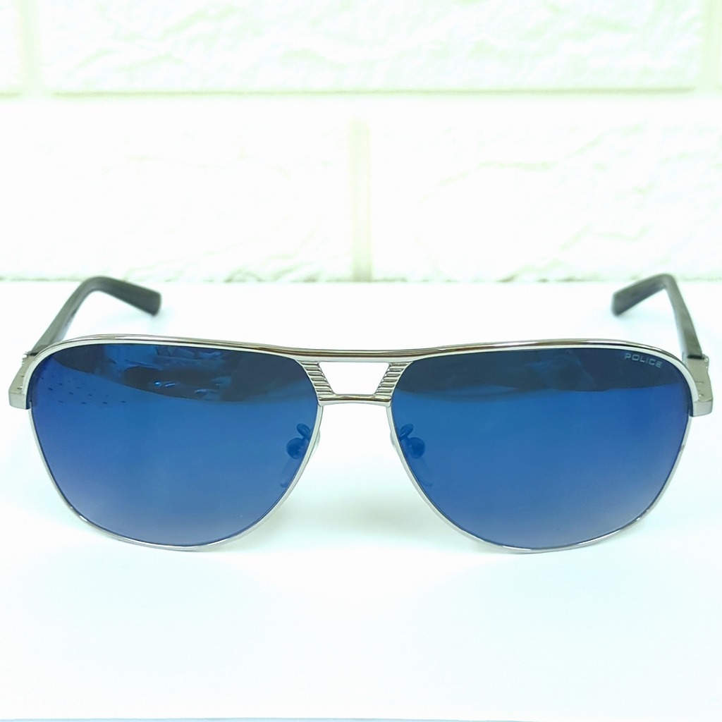 1101-23y-500ym 【商品内容】 POLICE ポリス サングラス FLASH2 S8849 イタリア製 レンズカラー:ブルー系 【コンディション】 フレーム若干スレくすみございます。 中古品ですので写真の状態をよくご覧ください。 【サイズ】 表記サイズ:61□13 135 レンズ幅:\(61mm\)ブリッジ幅:\(13mm\)テンプル長:\(135mm\) 【付属品】 なし