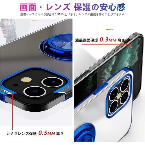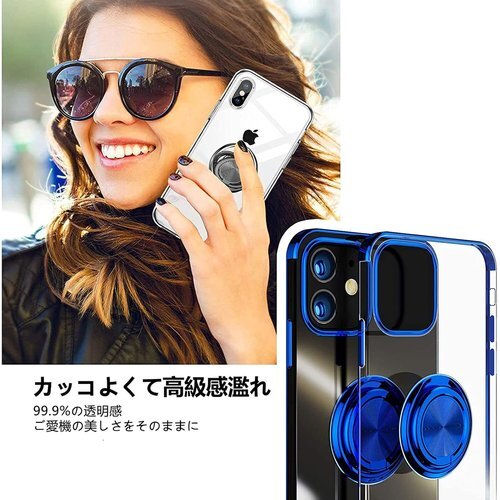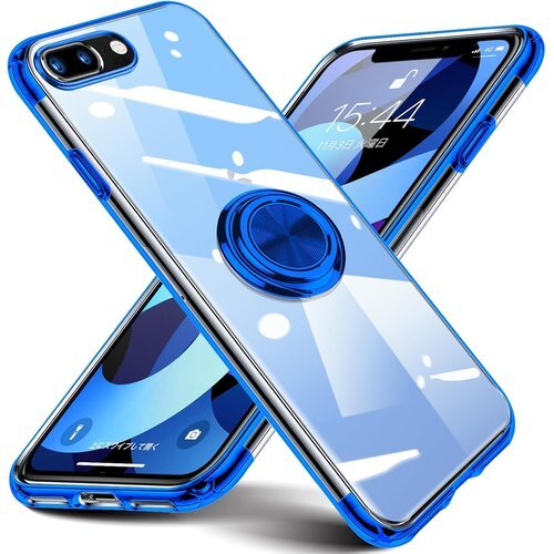 iPhone 8 用 Plus ケース iPhone 7 Plus 用 ケース リング付き クリア 透明 柔軟 TPU 耐衝撃 車載ホルダー対応 米軍MIL規格 ストラップホール付き 薄型 軽量 擦り傷防止 耐久 スリム アイフォン8P/7P ケース 青 R63-YXZH-8P-QIN 73