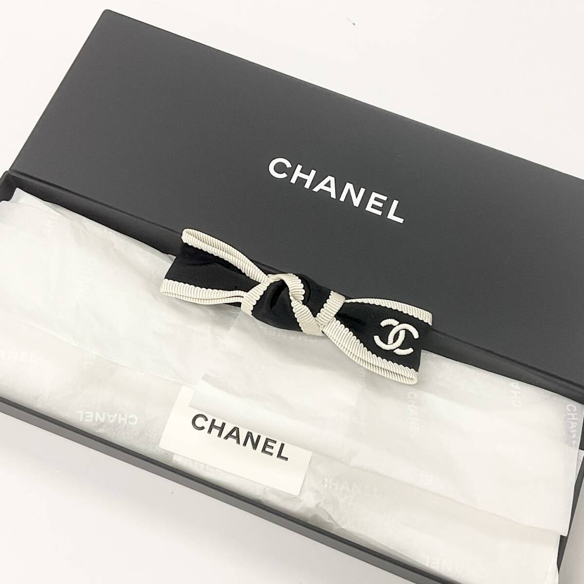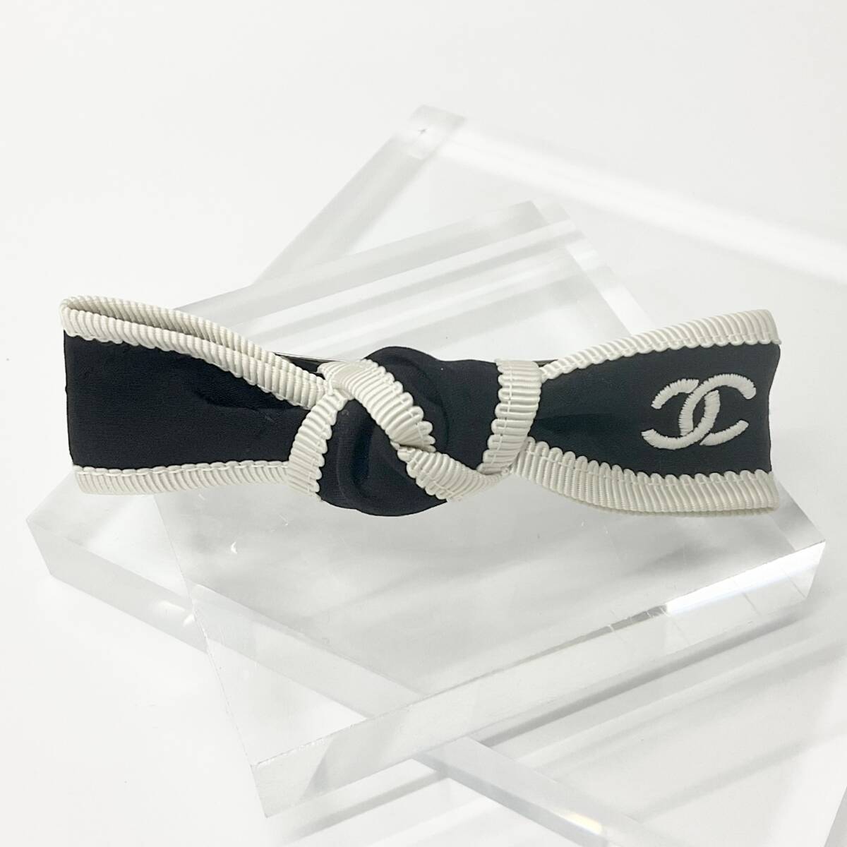 シャネル ココマーク リボン バレッタ ヘアアクセサリー ブラック アイボリー
