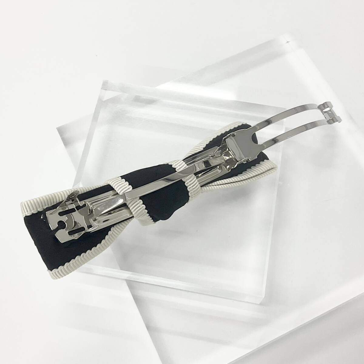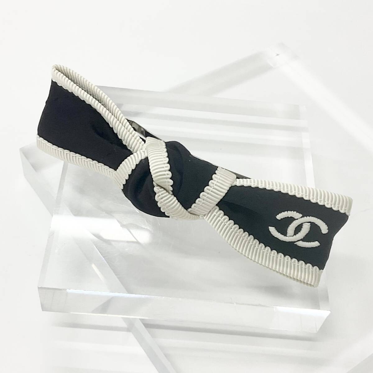 M13347 シャネル ココマーク リボン バレッタ ヘアアクセサリー ブラック アイボリー
