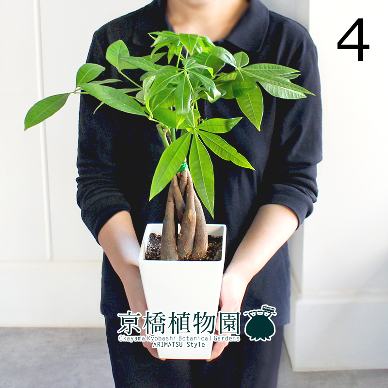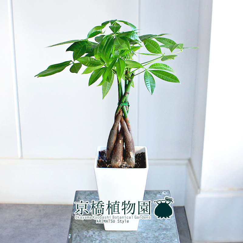 【現品】パキラ 編み込み 5号 白スクエア鉢(4)Pachira