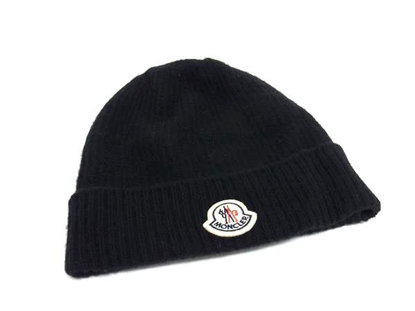 1円 ■美品■ MONCLER モンクレール ウール×カシミヤ ニット帽 ニットキャップ 帽子 メンズ ブラック系 FN0541
