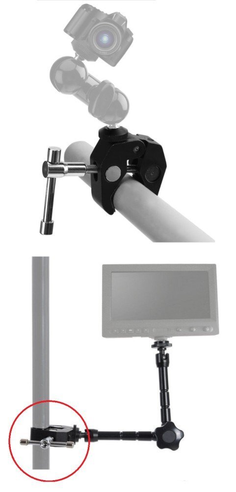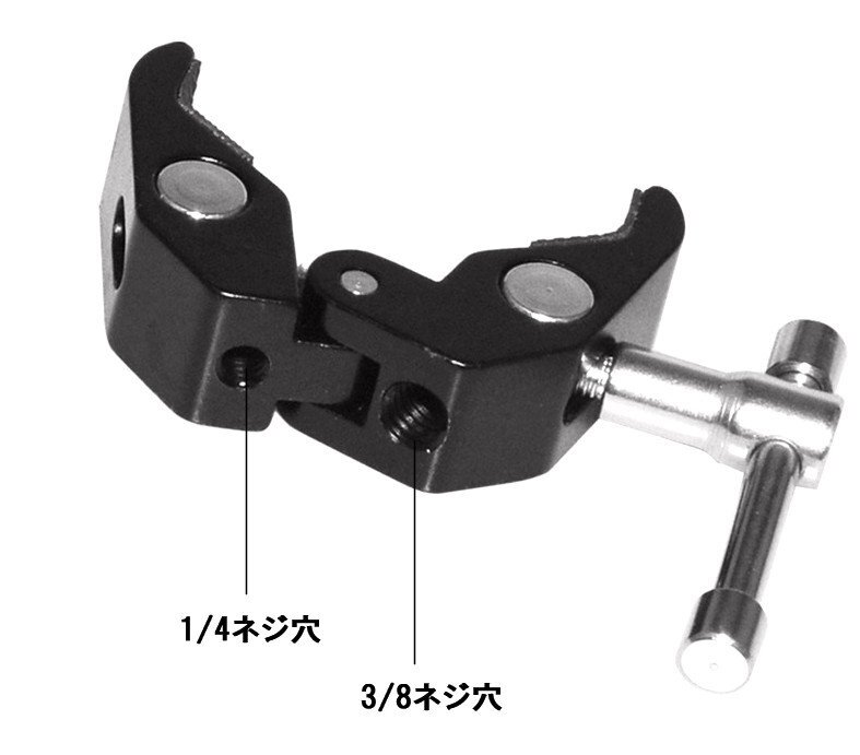 多機能で使える強力クランプです。 滑り止めのラバーパッドを採用し、カメラの脱落や破損を防ぎます。 また、1/4インチネジと3/8インチのネジ穴がありますので、ここから様々なアクセサリの取り付けが可能です。 素材となるアルミ合金は非常に軽量なうえに耐食性も良好です。 ※クランプのみです。ブラケット等は付属しておりません。 ※輸入品の為、基本的に日本語説明書は付属しておりません。 |