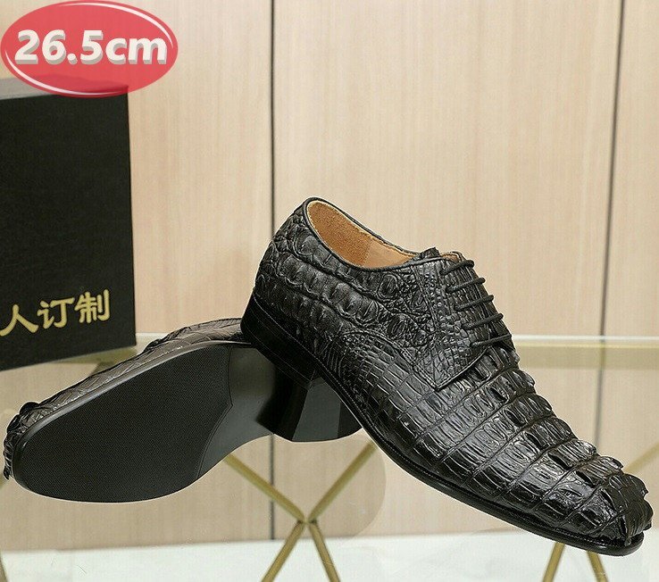 クロコダイルレザー ビジネスシューズ 最高級 ワニ革 クロコダイル 靴 メンズシューズ 革靴 ブラック 26.5cm 【n782】
