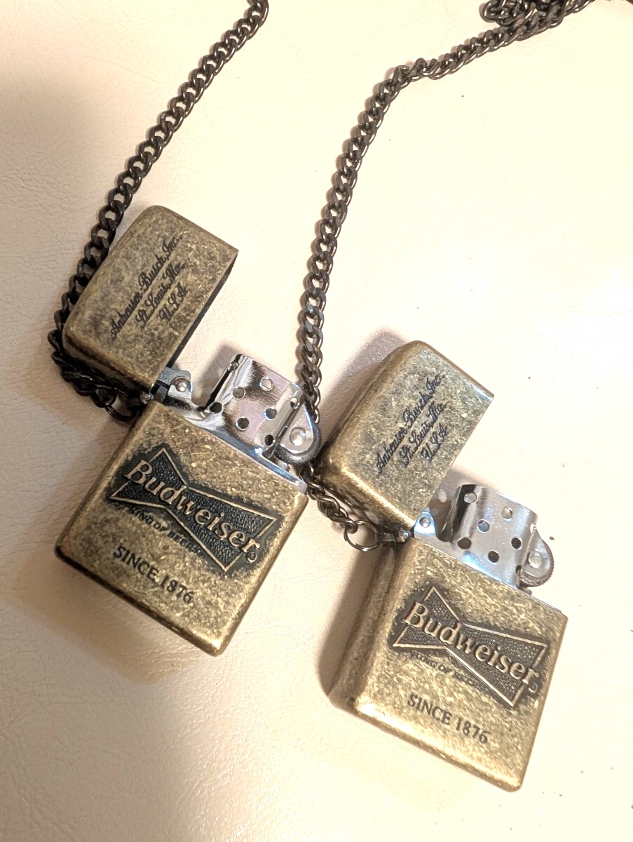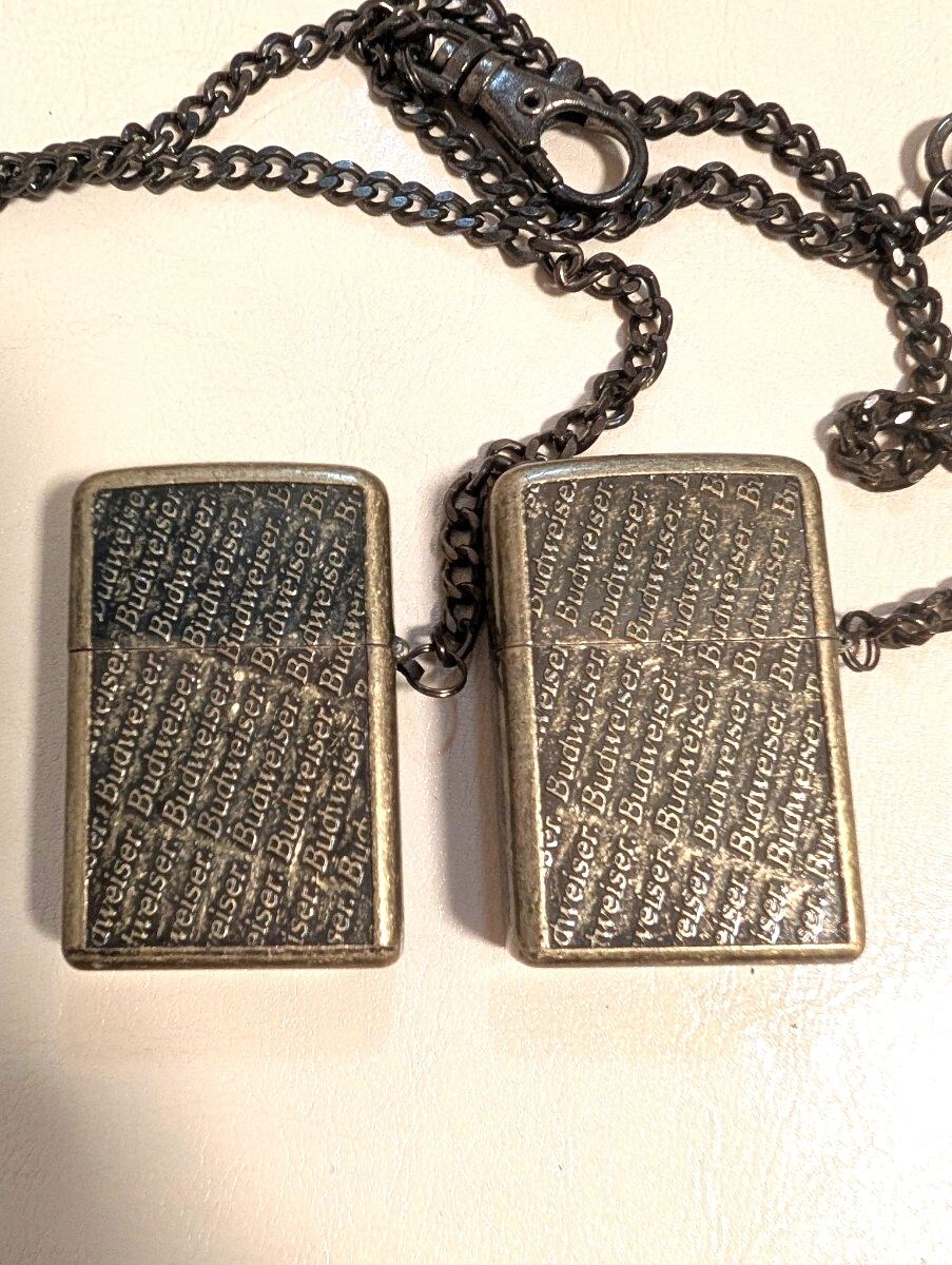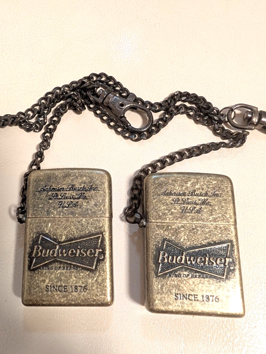 Budweiser 金色ライター チェーン付きオイルライター バドワイザー 2点セット