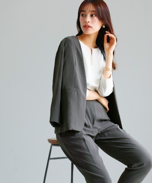 参考商品名:UV CUT・速乾・接触冷感・ストレッチ・洗濯機可・軽量【ラフなのに さりげなくキマる】カルゼワッシャー・カラーレスジャケット&テーパードパンツ/セットアップスーツ