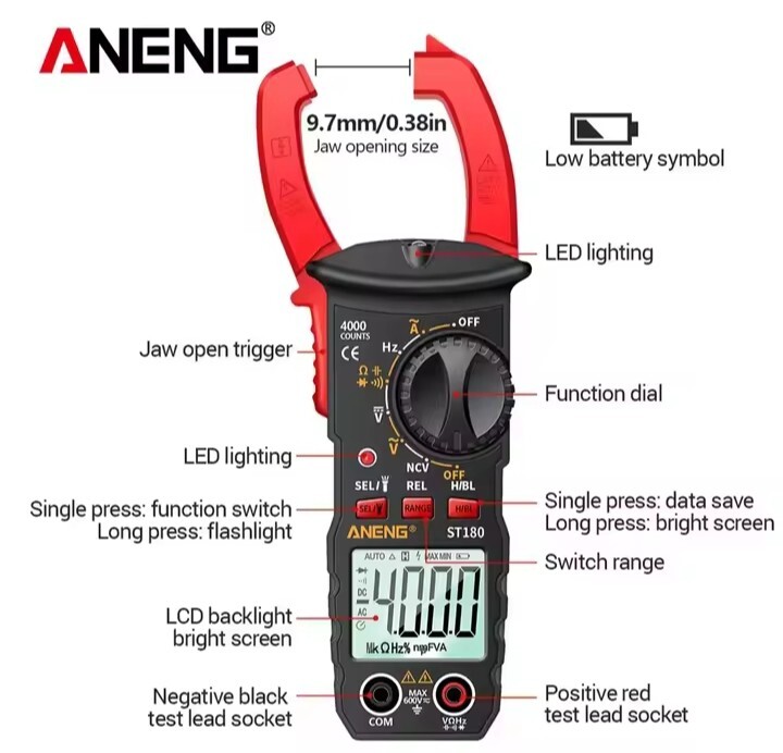 ANENG ST180 スマートクランプメーター(ACDC電圧電流計)です。