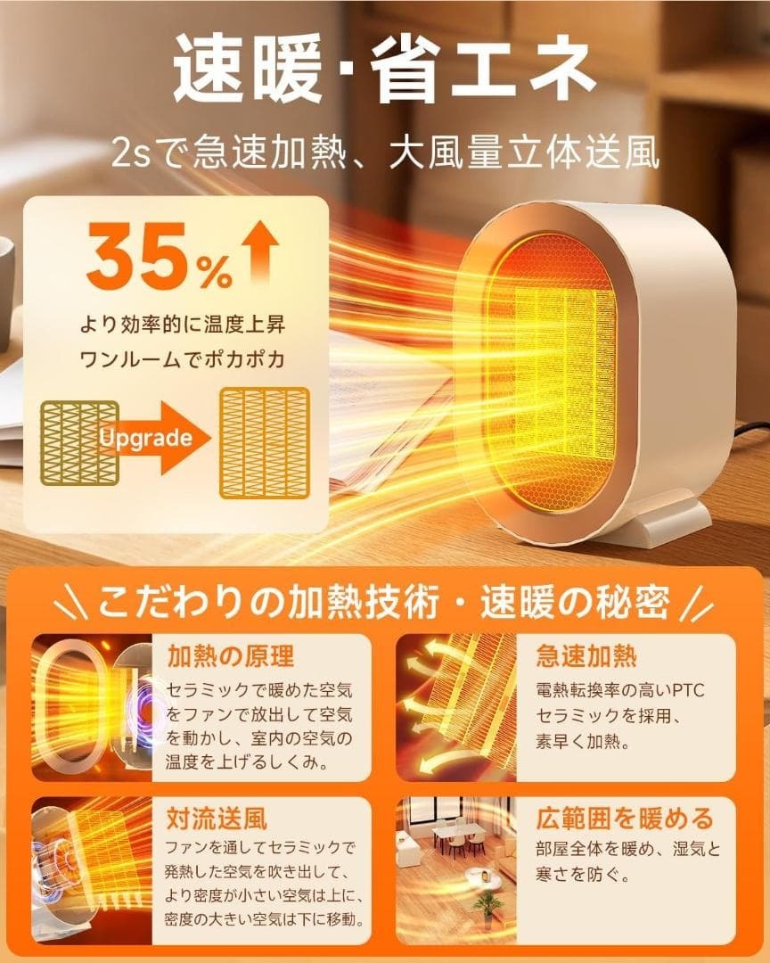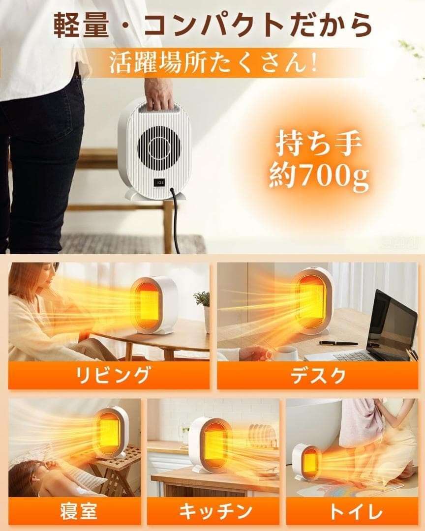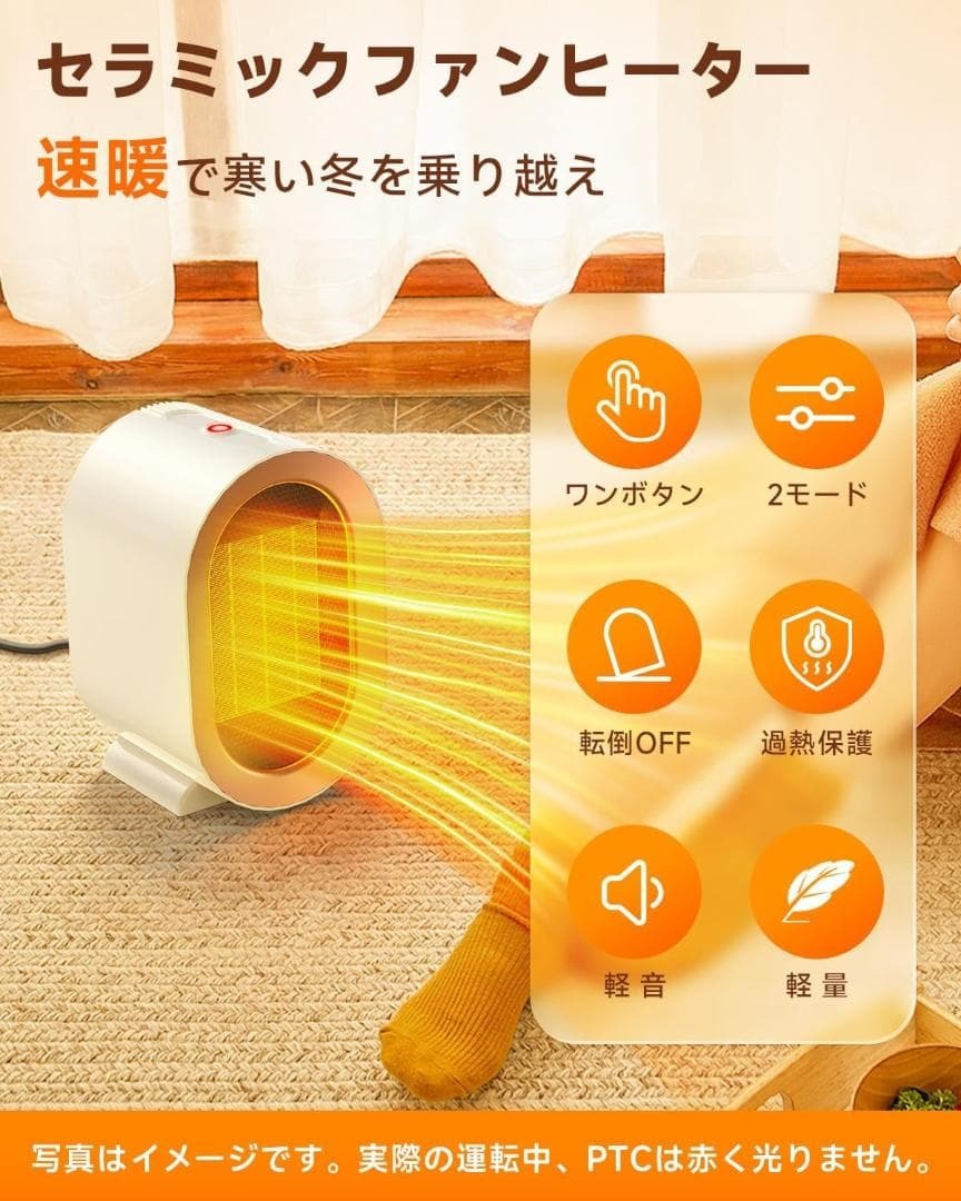 電熱線を電気で加熱し、遠赤外線の温風をファンで送り出す暖房器具。耐熱性の高いセラミックで覆われている安全性の高い設計で、軽量かつ小型で持ち運びしやすいのが特徴。灯油などの燃料を必要とせず、換気も必要ないというメリットがあります。そのため、脱衣所やトイレ・デスク下やキッチンなどメイン暖房の風が届きにくい、狭い場所でスポット暖房として使うのがおすすめ!