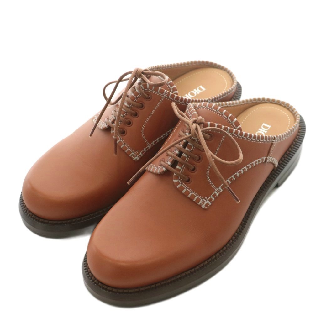 未使用品 ディオール × デニムティアーズ カーロ スライド ミュール サンダル レースアップ レザー 41 茶 ブラウン 3DE361ZMP70041
