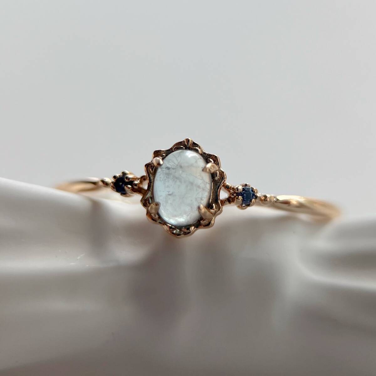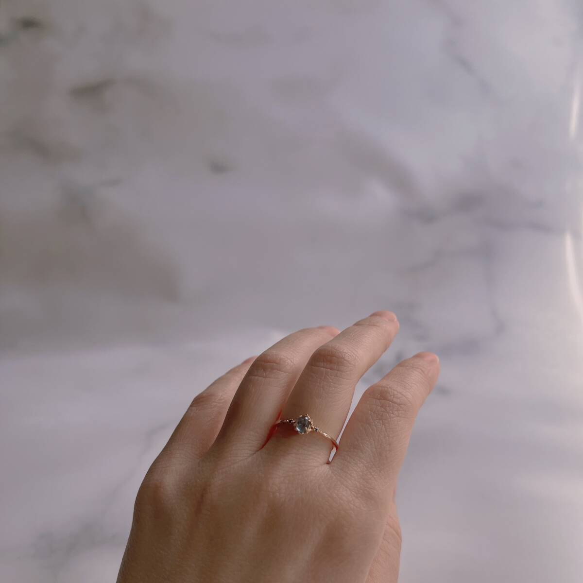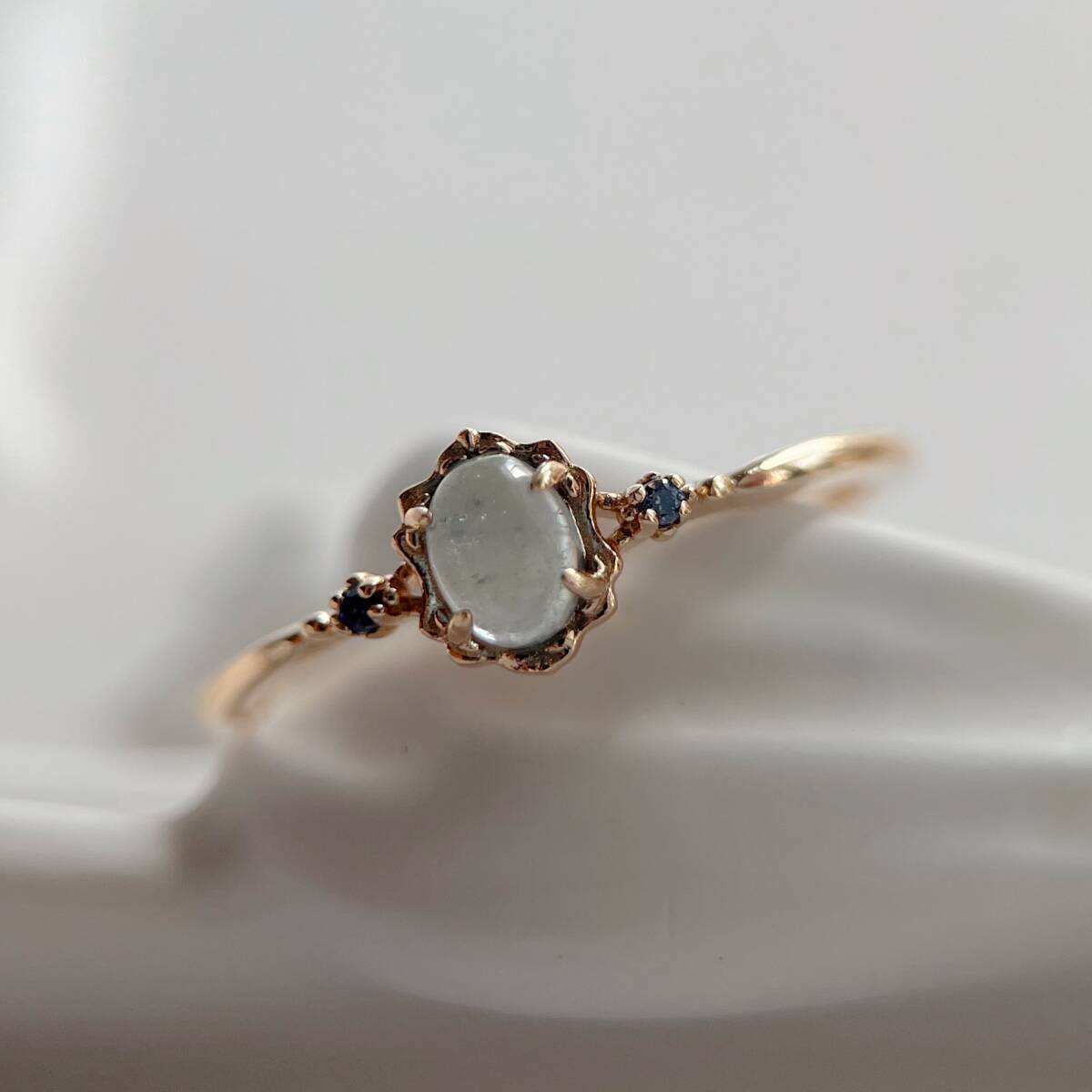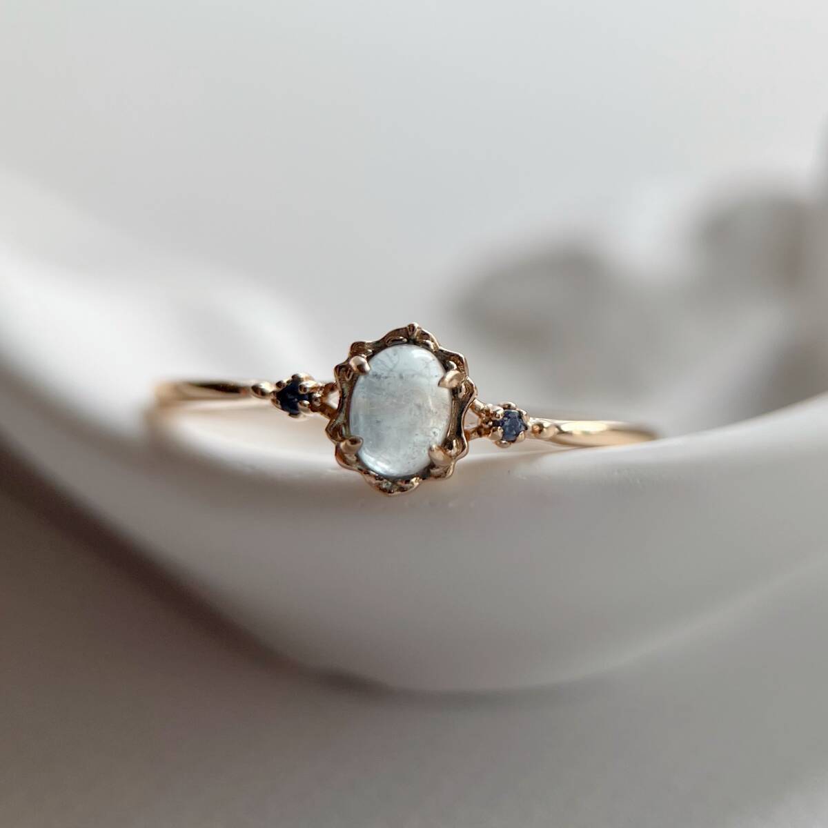 サイドストーンはタンザナイト色のキュービックジルコニア。