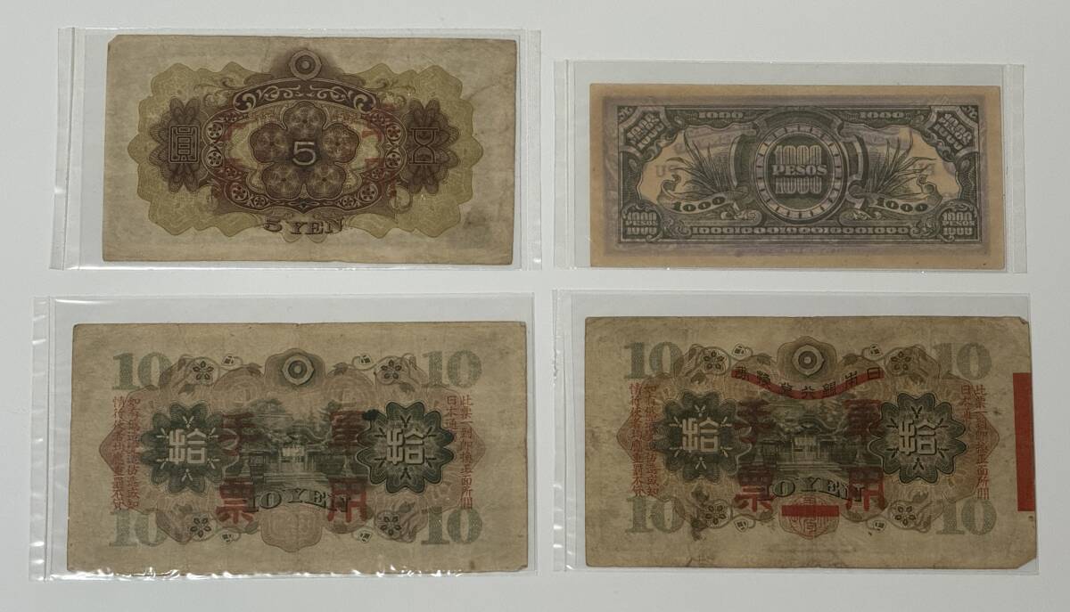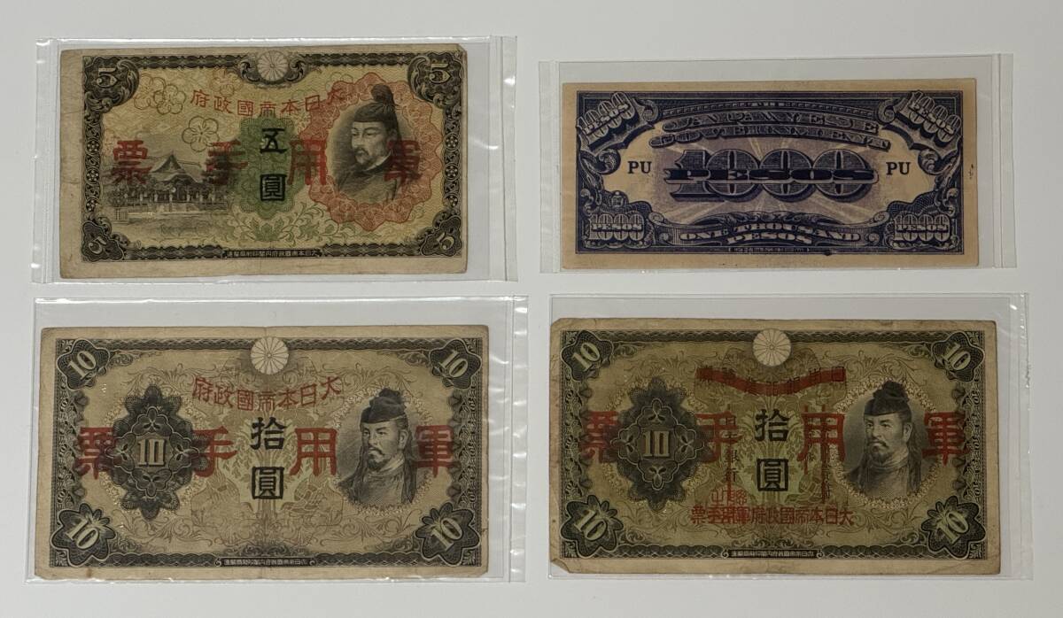 軍用手票4種(五圓、拾圓×2種、1000ペソ軍票)