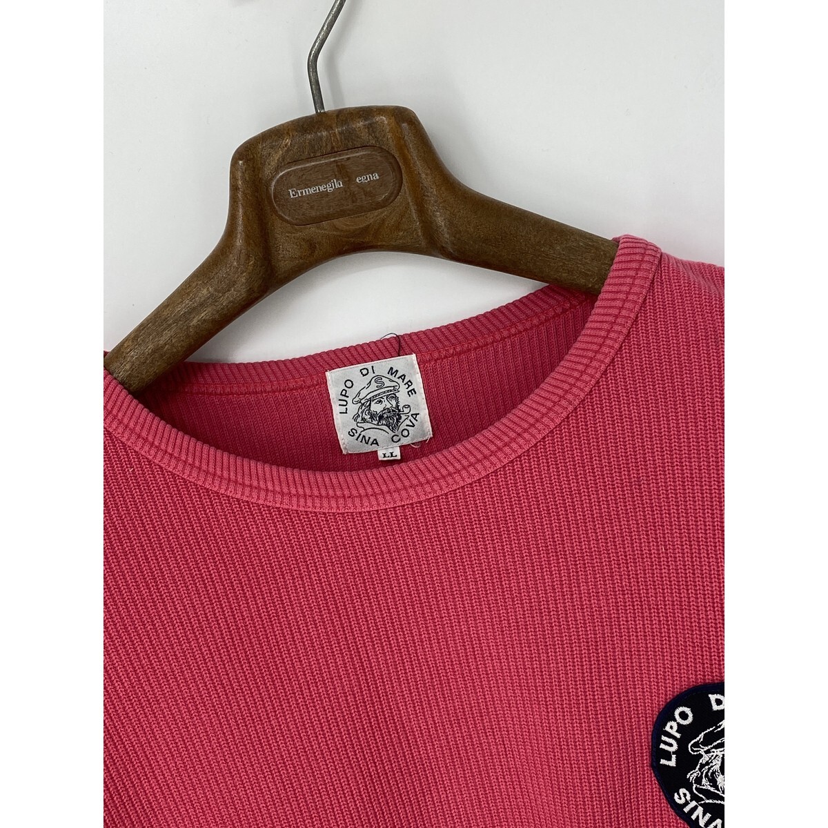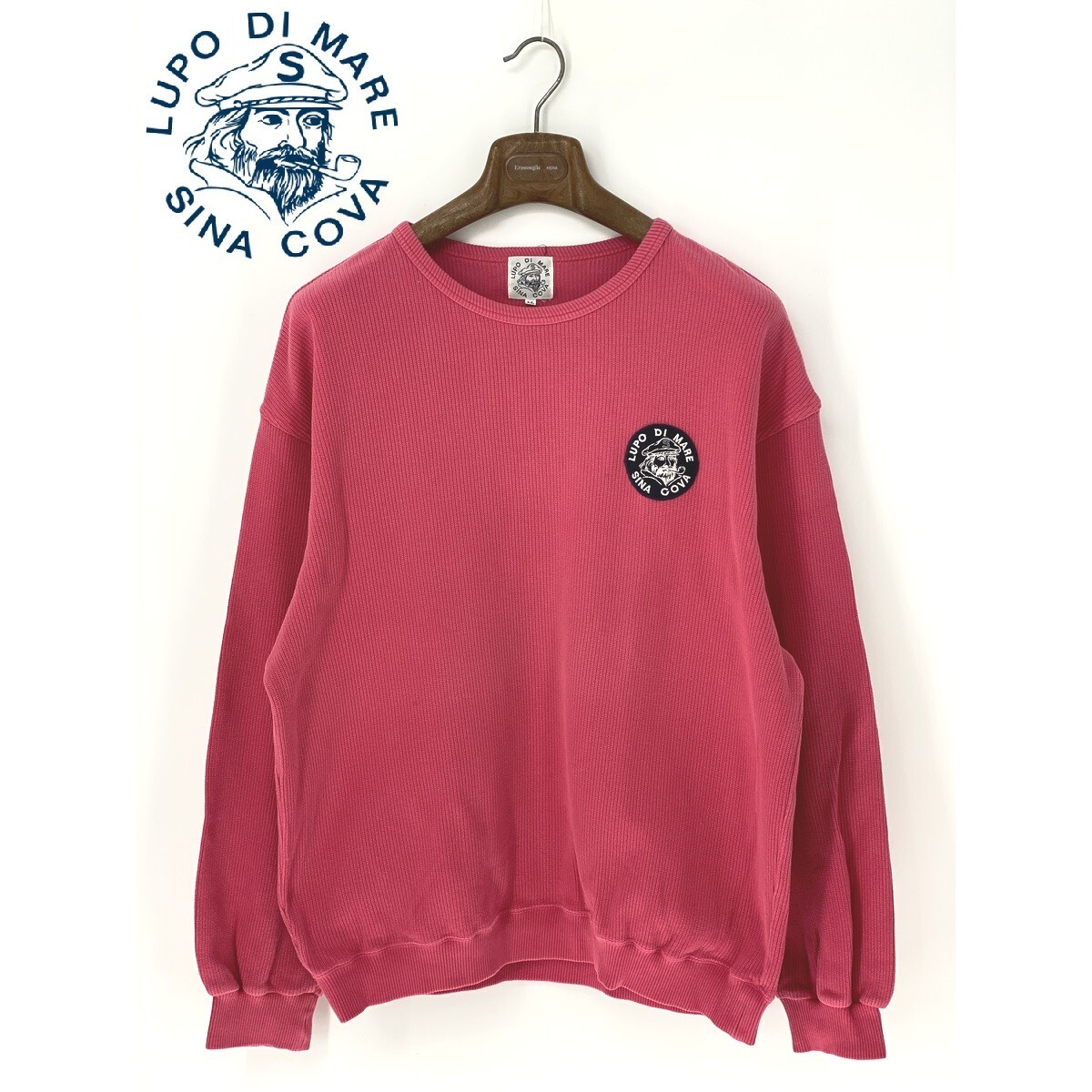 A8683/美品 春夏 SINA COVA シナコバ コットン 長袖 クルーネック 胸ロゴワッペン リブ トレーナー ロンT LLピンク メンズ ニット セーター