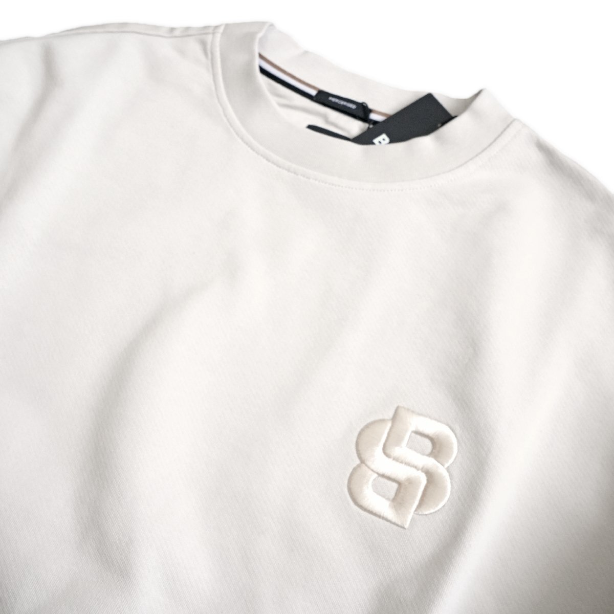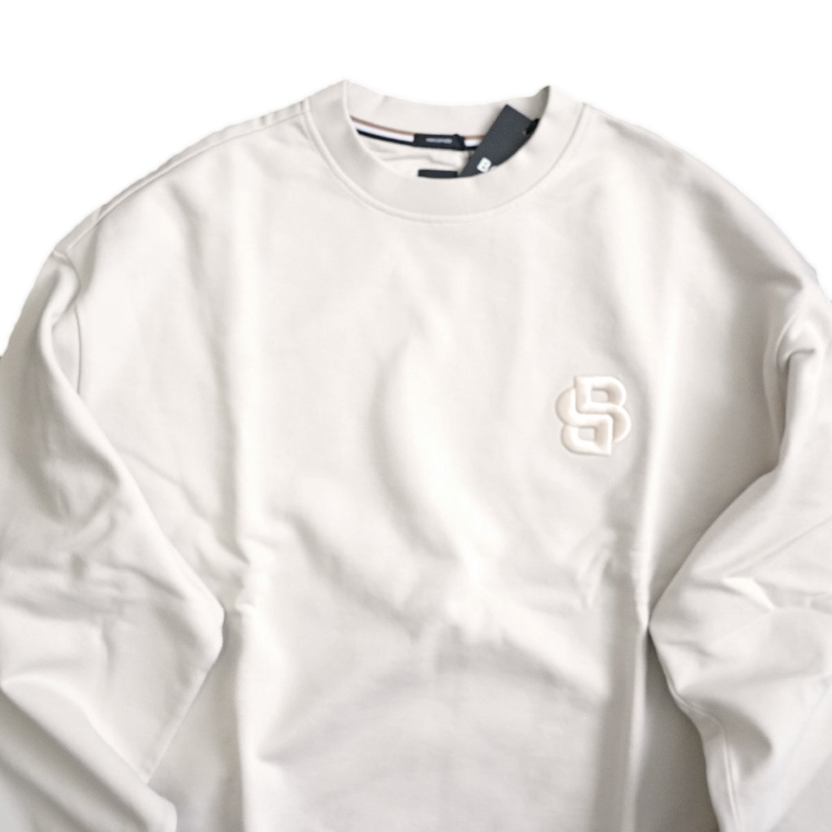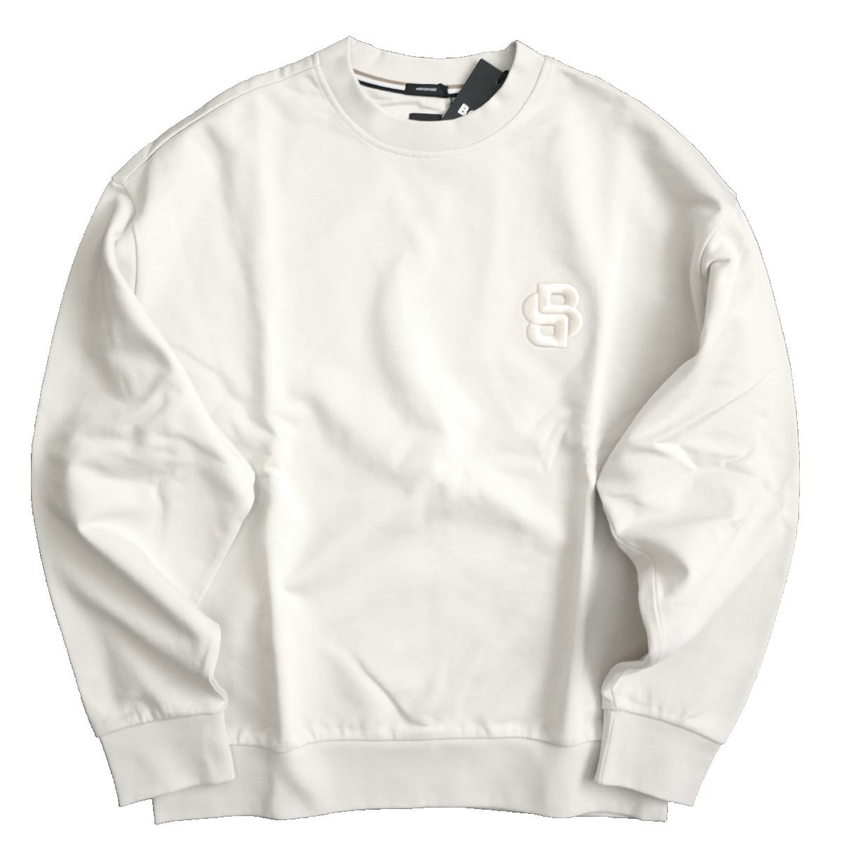 2026◆最新◆ヒューゴ ボス◆上品さと大人の余裕が薫る“オフ白スウェット”シャツ Double B ロゴ モノグラム L リラックスFIT◆HUGO BOSS