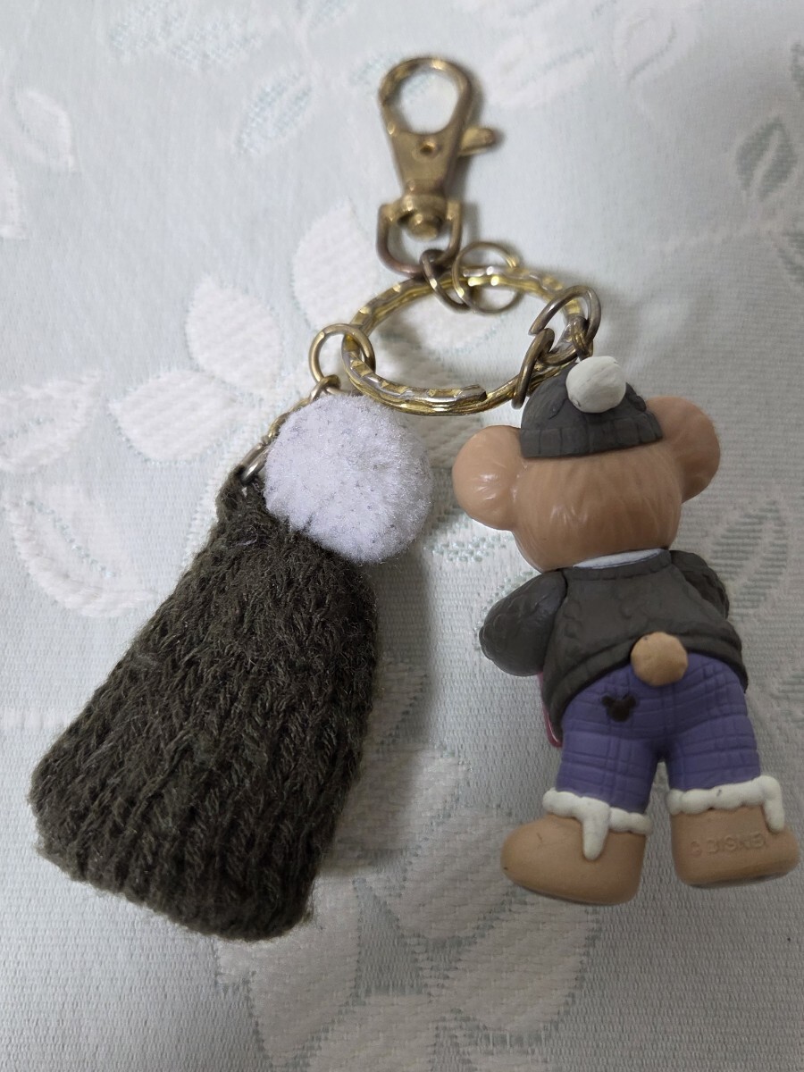 こちらの商品はシェリーメイは未使用です。ダッフィーは日常的に使用していたのでかなりの使用感、キーチェーン部分の黒ずみ、剥がれ、ニット帽の伸び、汚れ等ございます。ニット帽は衣類漂白剤で除菌はしてありますが、黒い毛羽立ちは取りきれておりません。