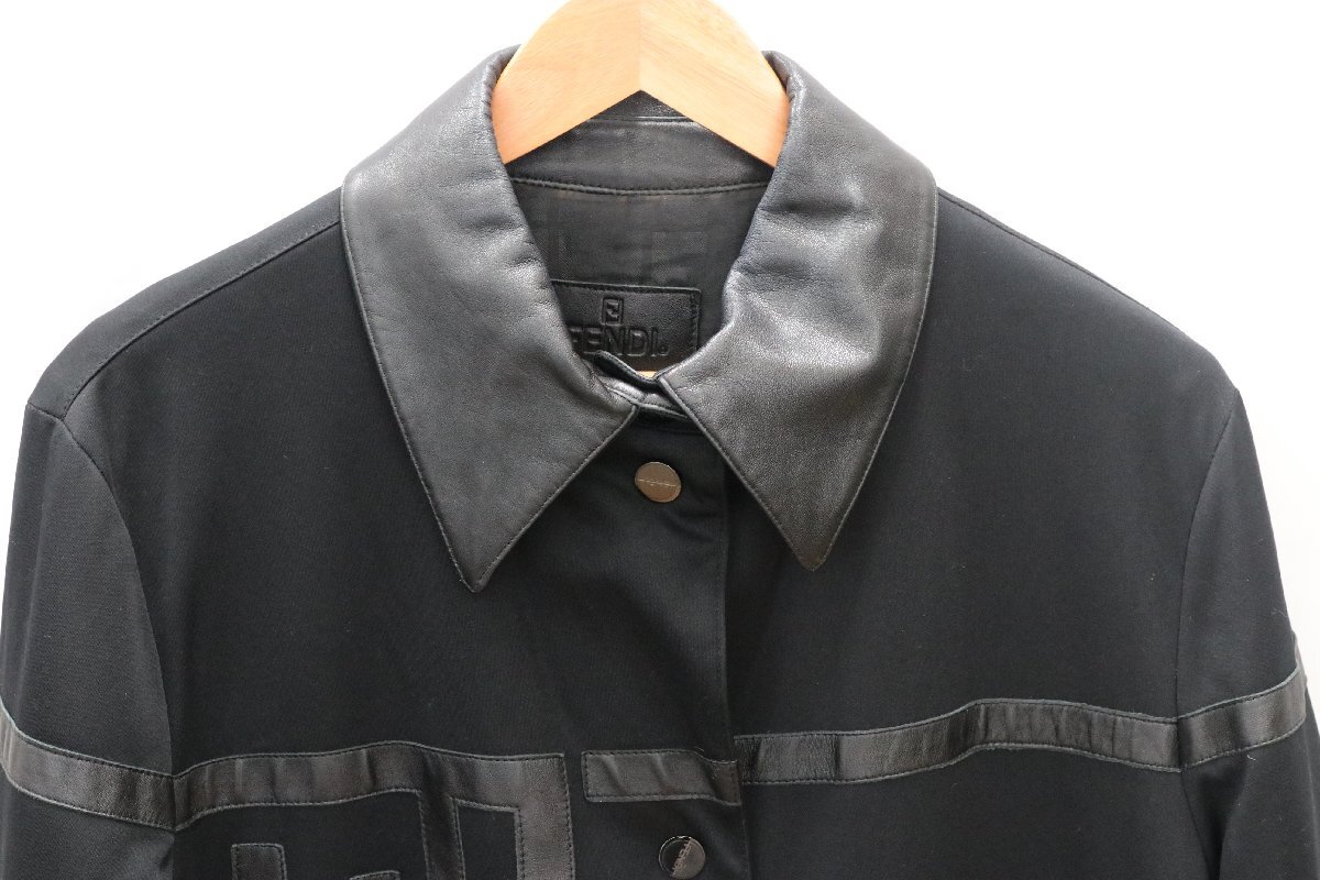 | FENDI フェンディ レザー コンビ コート サイズ42 FF ズッカ柄 ブラック 黒 ヴィンテージ イタリア製 | ||