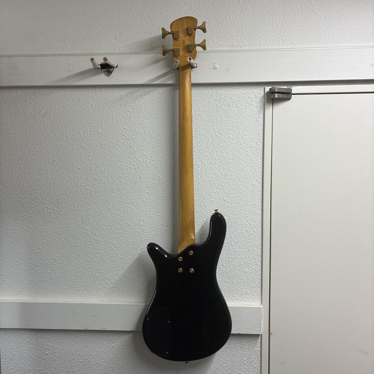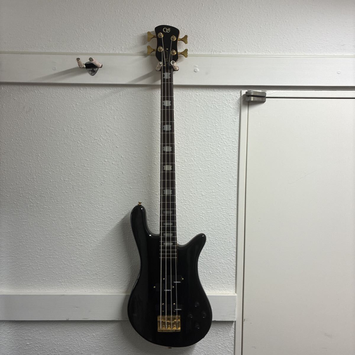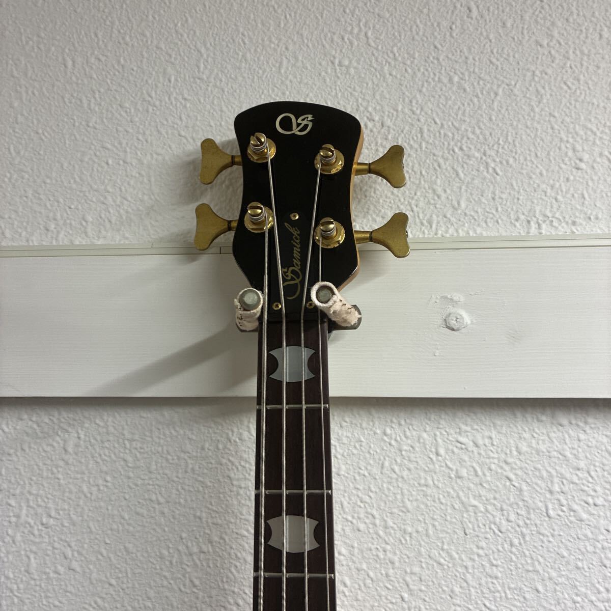 こちらは韓国のギターメーカー、Samick (サミック) 製の4弦エレキベースです。世界的にも人気の高いベースブランド Warwick (ワーウィック) の代表的なモデル Corvette (コルベット) に酷似した特徴的なボディシェイプを持っています。