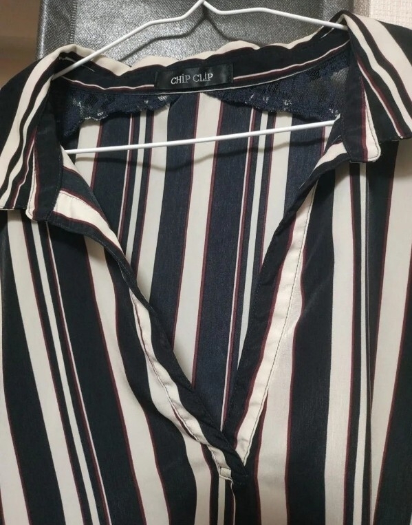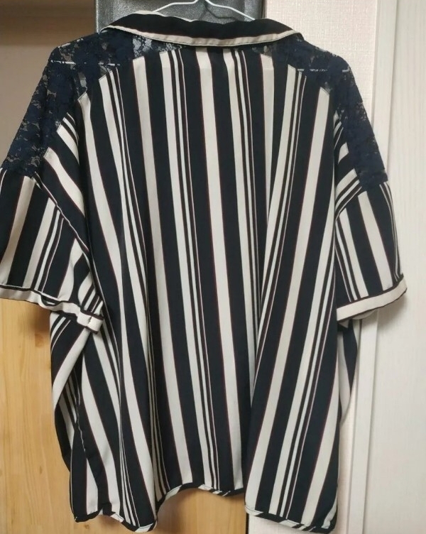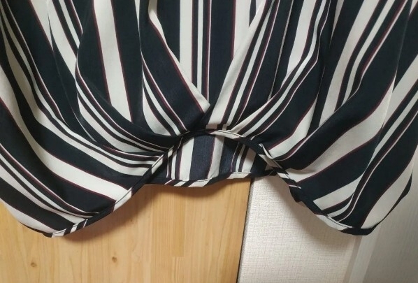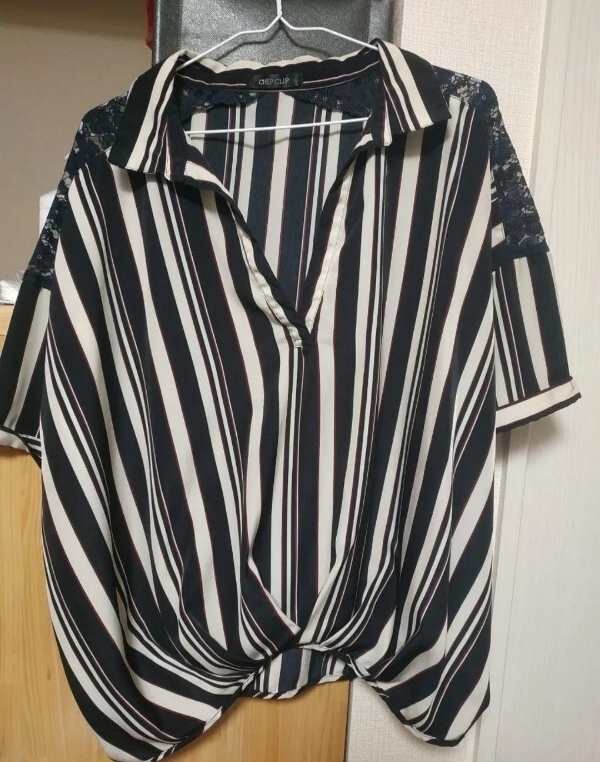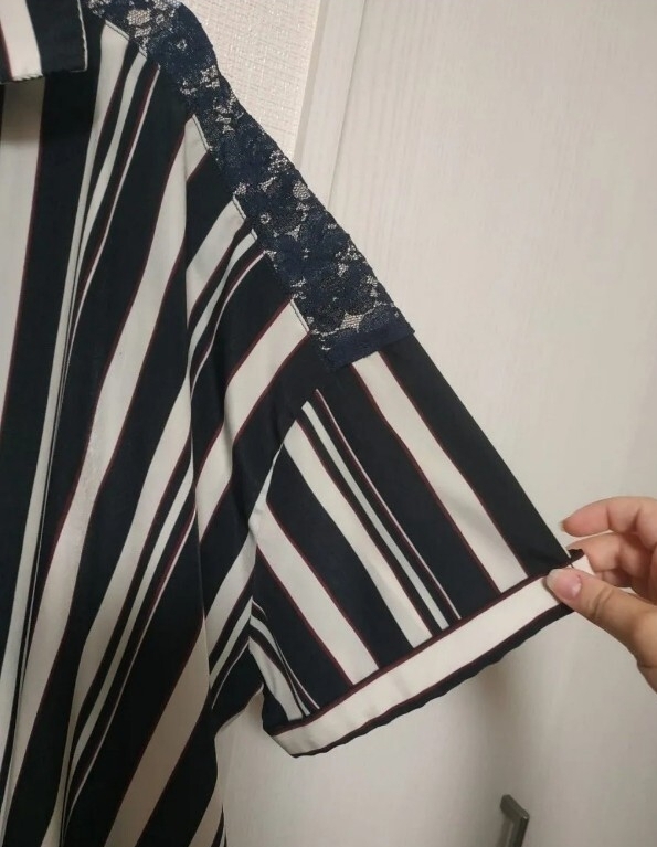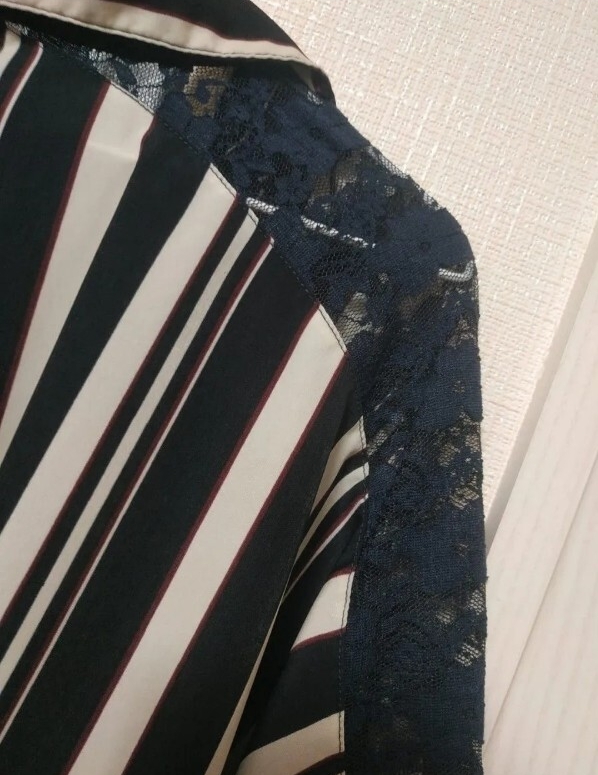 【デザイン】ストライプ、レース切替、前裾結びデザイン