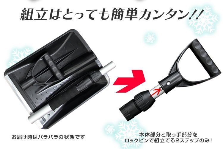組立て式のスコップだから、車載用としてピッタリです。 収納袋付きなので汚れても大丈夫!! 工具不要、組立て簡単です。 |