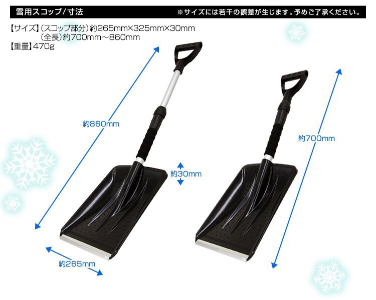 | 商品コード:AT063A ■商品仕様 サイズ(約): ・スコップ部分:265mm×325mm×30mm ・全長:700mm~860mm 重量(約):470g 材質:ポリエチレン他 ■保障期間 7日間 ※商品到着後7日以内の初期不良・破損のみご対応させていただきます。 ■注意事項 ※商品は、モニターによって色合いが異なって見える場合があります。 ※仕様・デザインは改良のため予告なく変更することがあります。 ※当商品はプラスチック製のため、凍結し固くなった雪などの除雪作業にはご使用いただけません。 このような状況下で無理にご使用されますと、皿割れ、パイプ曲がりなど発生する場合がございます。 ※当商品を使用した際に発生したトラブル、事故につきまして、当社は一切の責任を負いかねます。 ※当商品は入荷の時期によりカラー、仕様などが変更される場合があります。ご了承下さい。 【もちろん新品未使用品です】 ▼検索キーワード スノースコップ 伸縮 車 雪下ろし 雪かき 車 雪かき 雪落とし 雪落とし 車 スコップ 雪 洗車 除雪 除雪用品 人気 おすすめ グランドフェスタ GRAND FESTA グラフェス GFA |