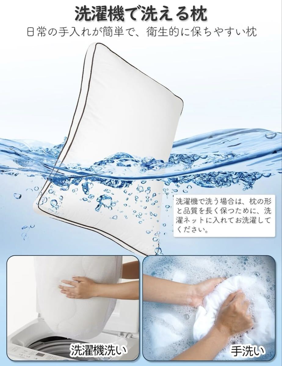 この枕は家庭用洗濯機で丸ごと洗えるため、いつでも清潔に保てます。洗濯の際は必ず洗濯ネットをご使用ください。耐久性に優れ、繰り返し洗っても型崩れしにくく、汗やニオイ、日常の汚れもすっきり落とせます。(※洗濯前にはファスナーがしっかり閉まっていることを確認してください)