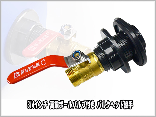■ 3/4インチ 真鍮ボールバルブ付き バルクヘッド継手 ■