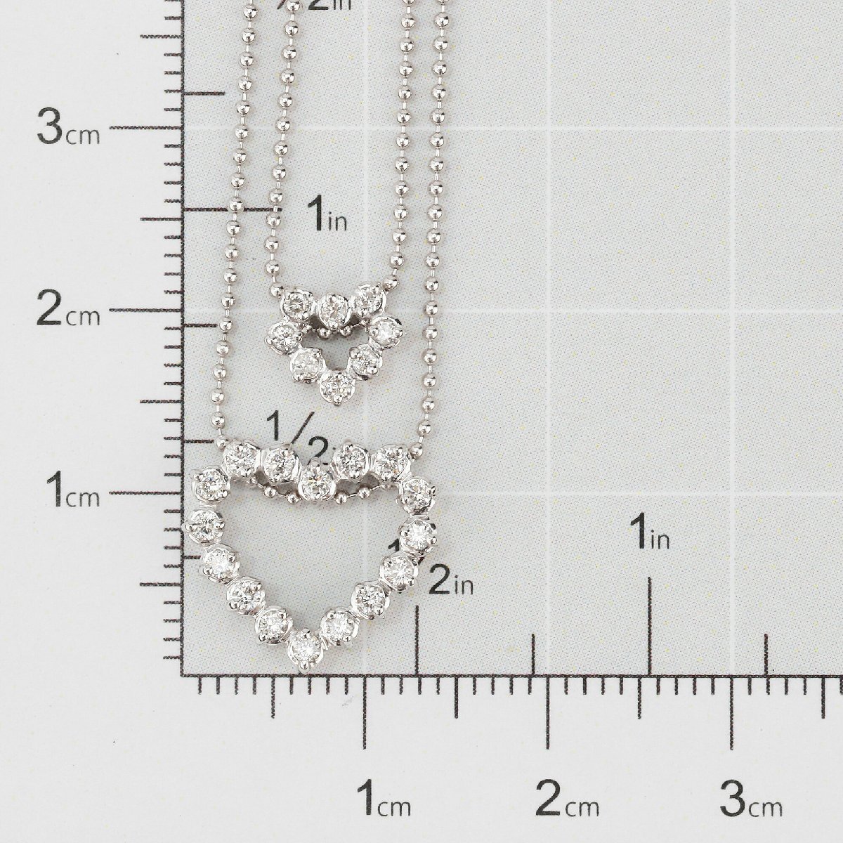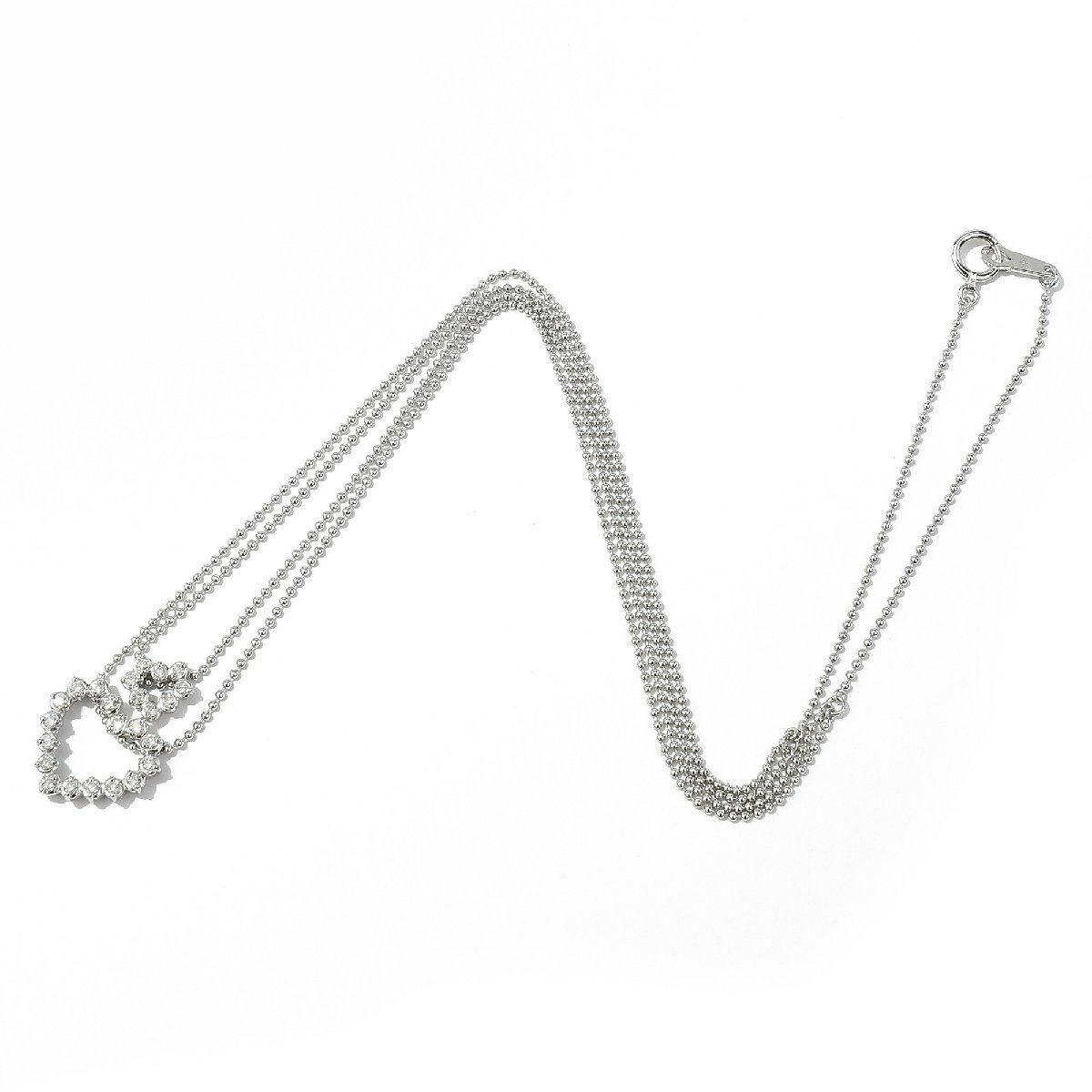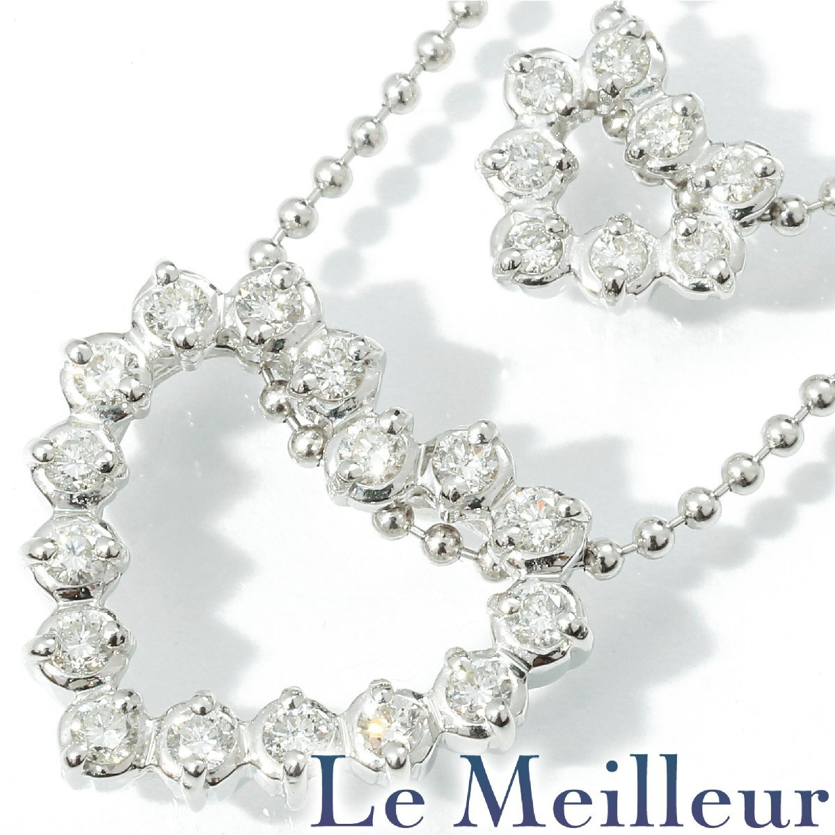 二連 ハート キラキラ 華やか 鮮やか キュート 普段使い デイリー 4月 誕生石 ボールチェーン 引き輪 ダイア ラウンドブリリアントカット 18金 WG 20代 30代 40代 50代 60代 70代 USED ユーズド 中古 リユース ネックレス LEP5672