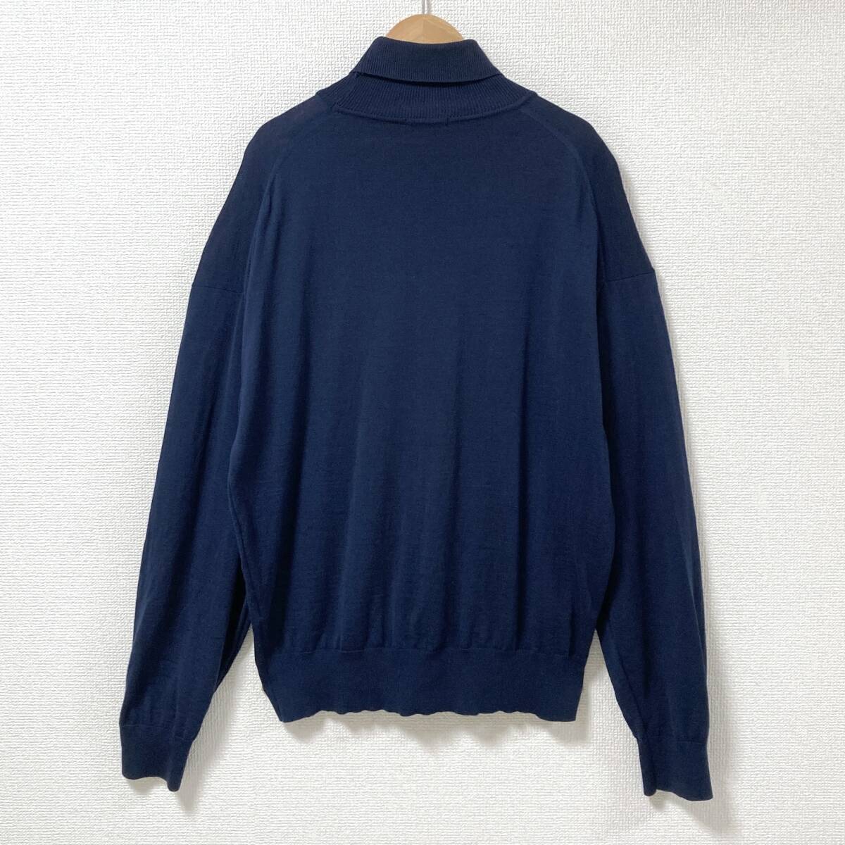 90s 黒タグ ISSEY MIYAKE MEN 薄手 ウール ハイネック ニット カットソー ネイビー