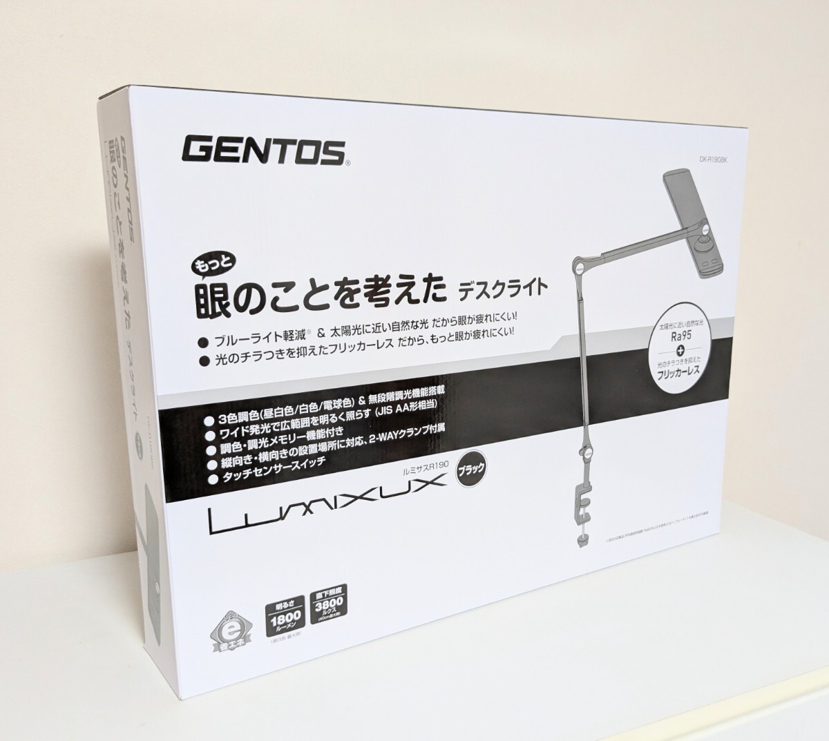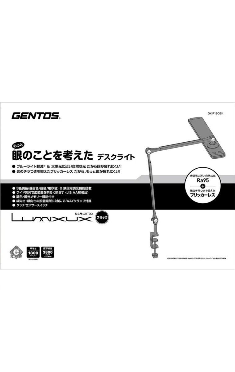 消費電力12W、直下照度3800ルクス(40cm最大時 電球色時)、JIS AA形相当