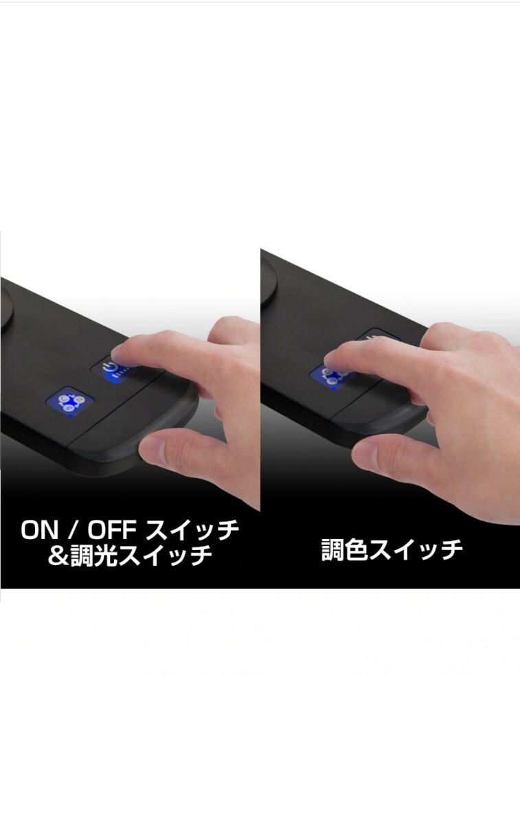 昼光色/白色/電球色の3段階調色機能、電源ボタンを長押しで無段階の調色も可能