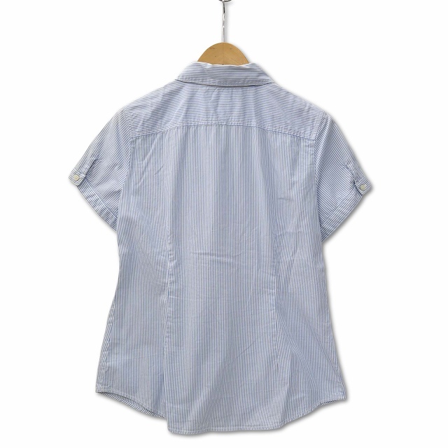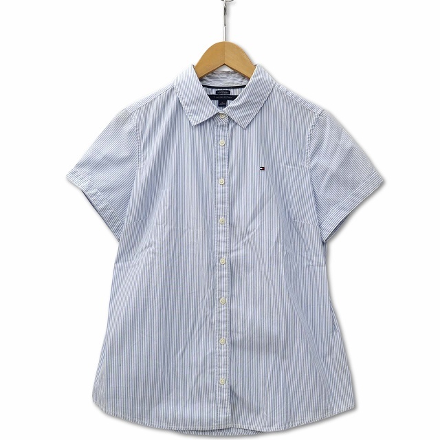 トミーヒルフィガー TOMMY HILFIGER フラッグ刺繍 半袖 ストライプ コットンシャツ ブルー レディース