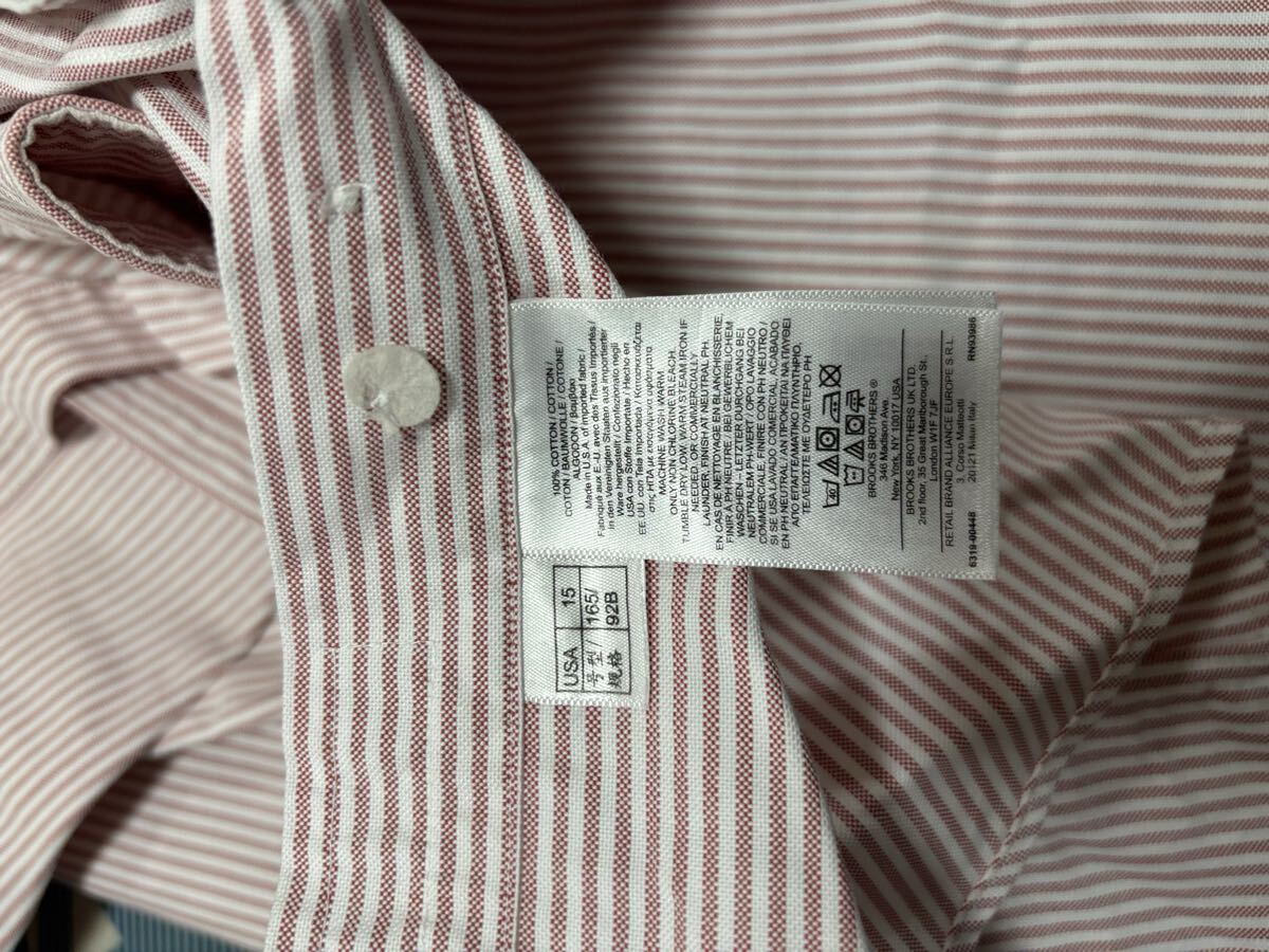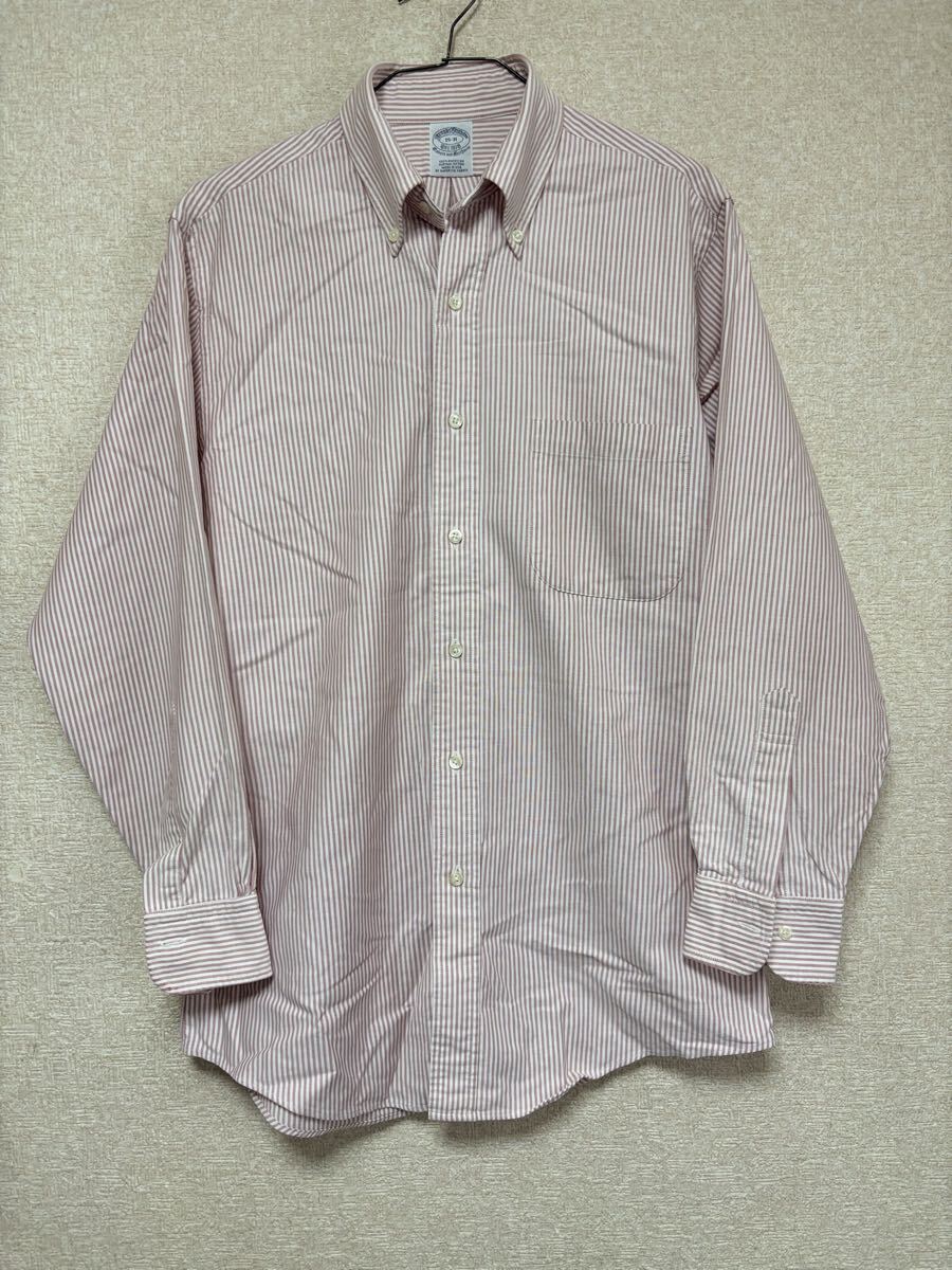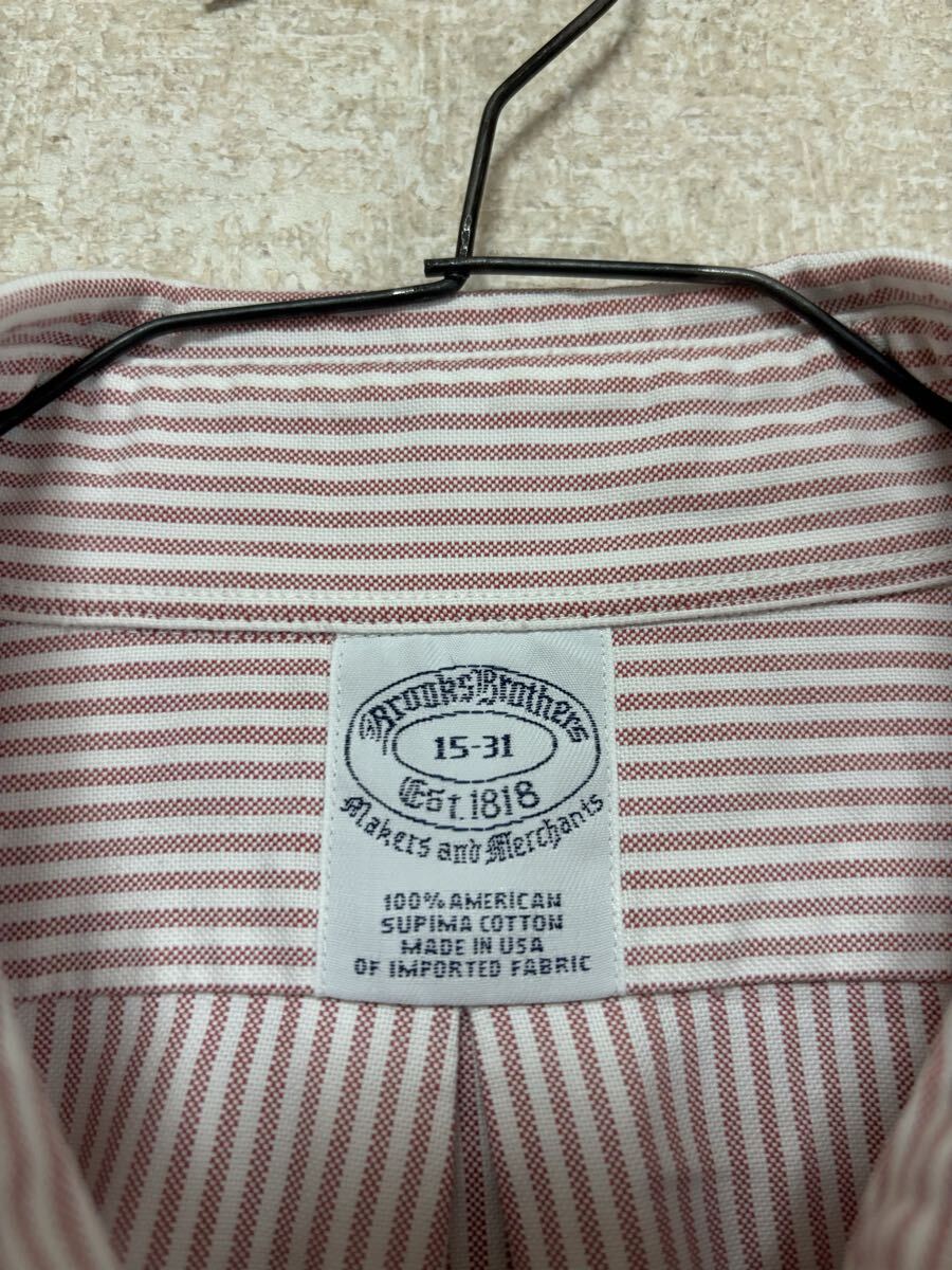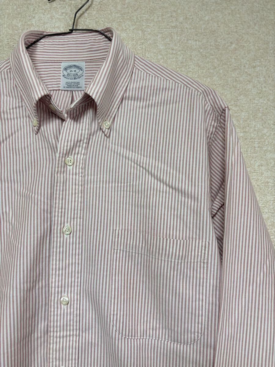 90s USA製 Brooks Brothers ブルックスブラザーズ ストライプ 長袖シャツ 15-31 メンズMサイズ ロゴ刺繍 ボタンダウンシャツ です。