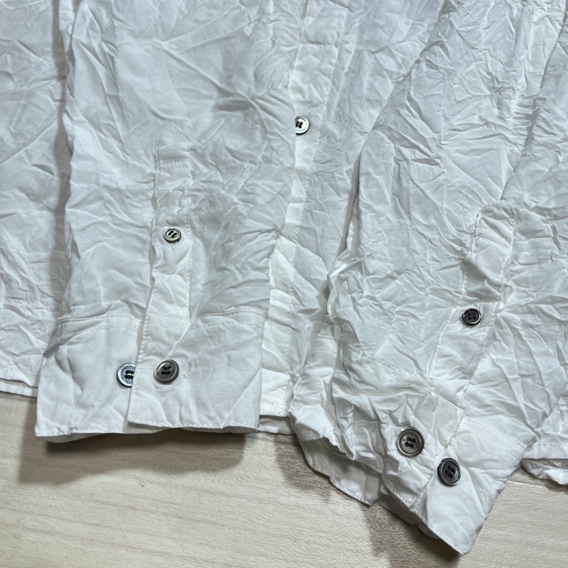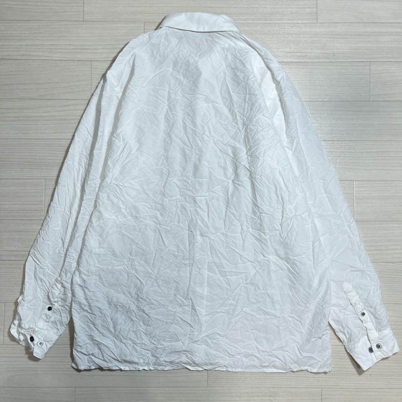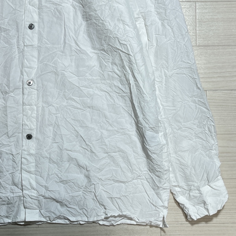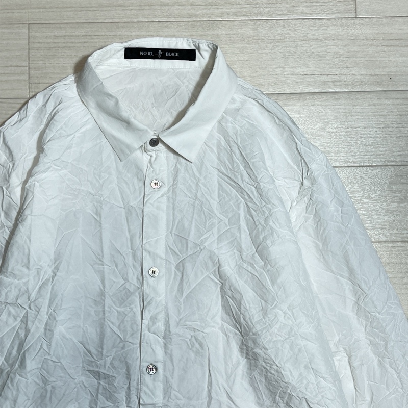 NO ID./ノーアイディー/ワッシャーショートカラーSH/シワ加工/オーバーサイズ/ボックスシルエット/長袖シャツ/ホワイト/フリーサイズ
