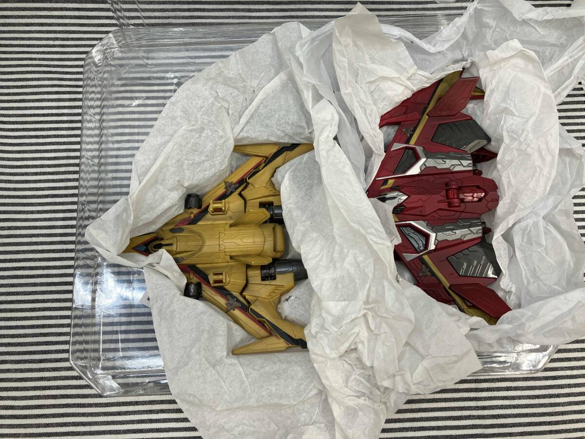 【セット内容】ガッツファルコン本体、ガッツホーク本体、ガッツファルコン専用台座、ガッツホーク専用台座、ガッツグリフォン専用台座パーツ【作品名】ウルトラマンデッカー |