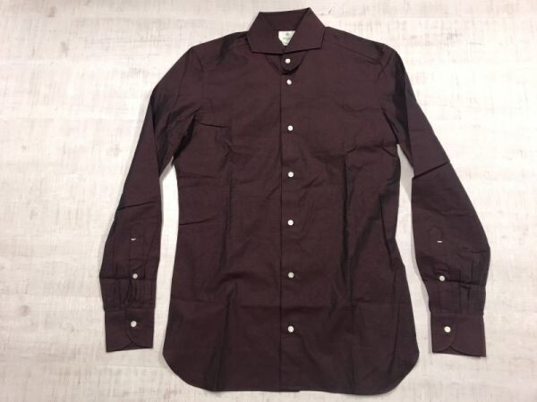 ITALY製 BORRELLI NAPOLI ボレッリ ナポリ イタリアン トラッド 古着 ホリゾンタルカラー 玉虫色 長袖ドレスシャツ メンズ 37 紫 です。