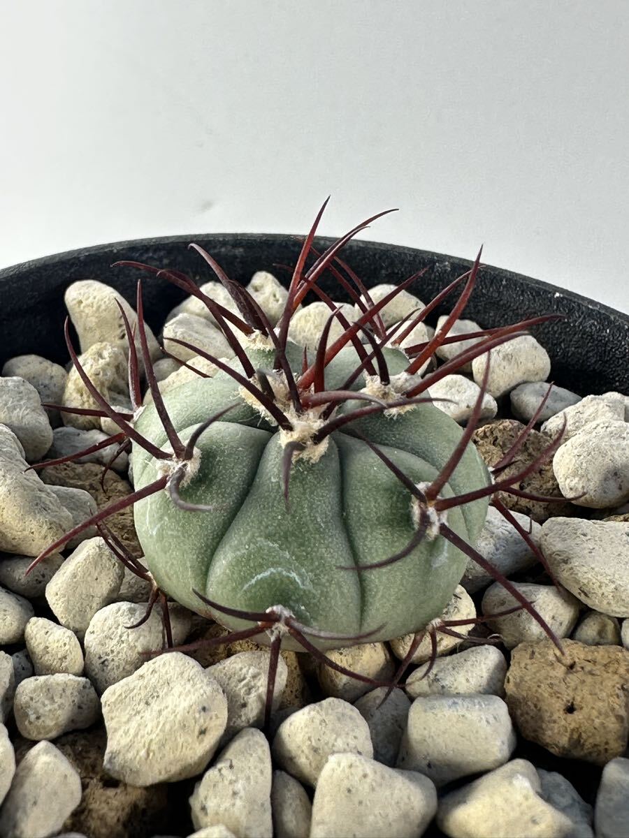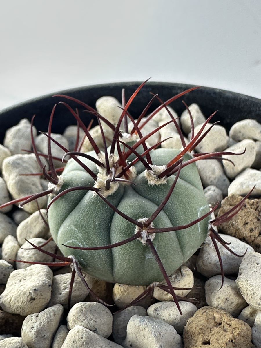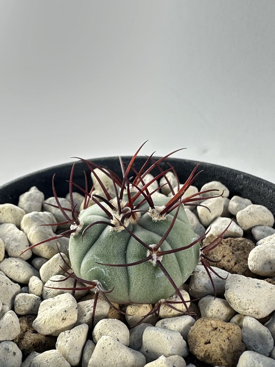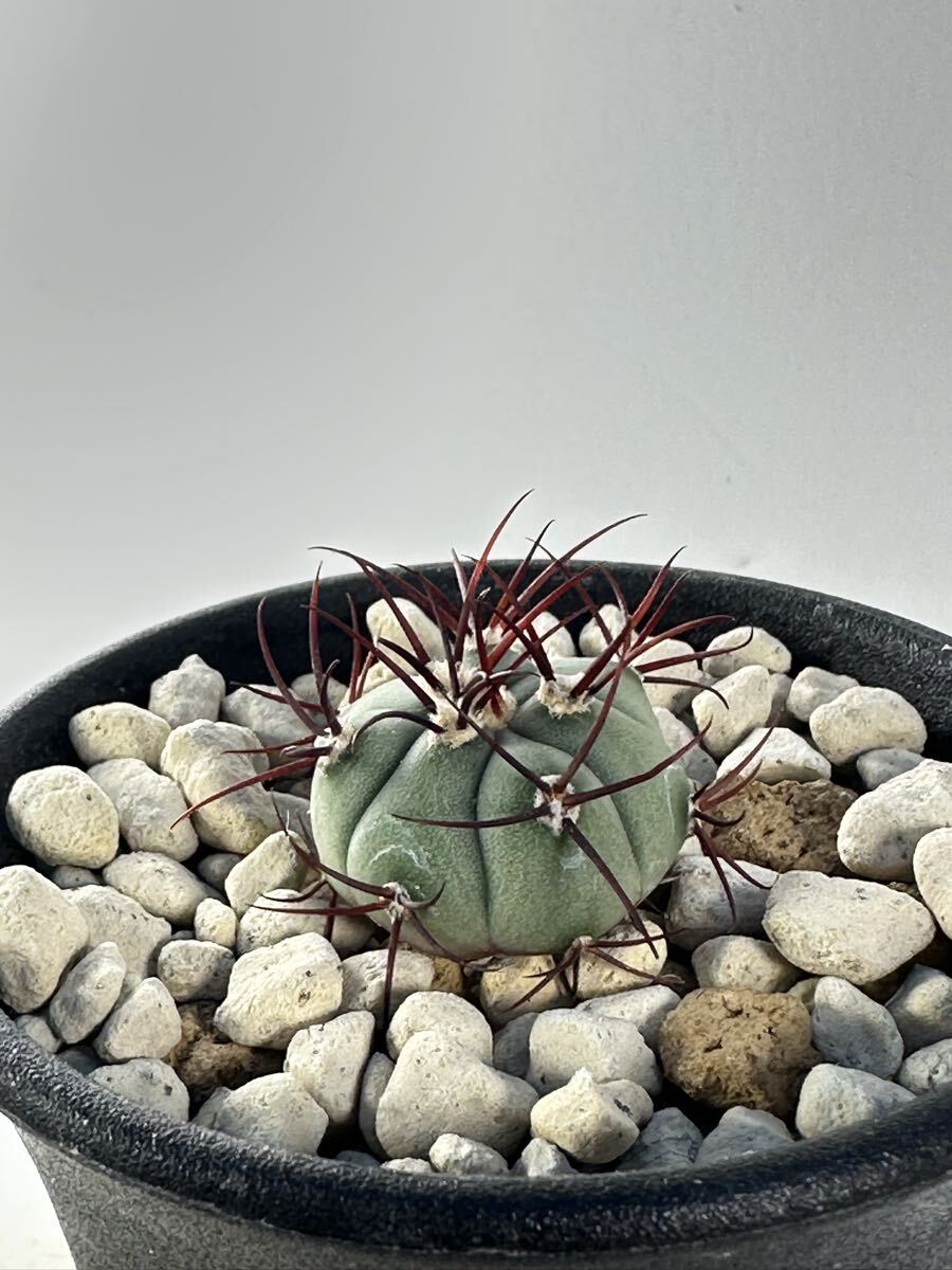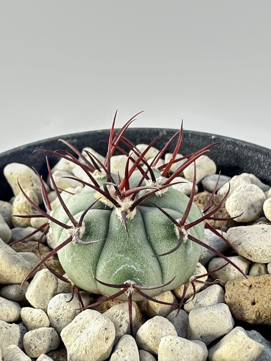 Gymnocalycium cabreraense VOS 2122 ギムノカリキウム カブレラエンセ パラグアイ原産 実生 サボテン 白肌 赤刺 希少 選抜棘