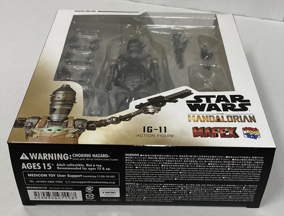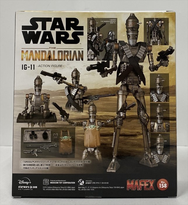 ★MAFEX IG-11 「マンダロリアン」 アクションフィギュア No.158フィギュア メディコム・トイ 中古★ 【メーカー】 メディコム・トイ 【商品名】 MAFEX IG-11 「マンダロリアン」 アクションフィギュア No.158フィギュア 【商品詳細】 サイズ:全高約185mm 【商品状態など】 こちらの商品は中古品です。 外箱にスレキズ等のイタミがあります。 現状でのお渡しとなります。 ━━━━━━━━━━━━━━━━━━━━━━━━━━━━━ ■他にも様々な出品物がありますので、是非ご覧ください■ ━━━━━━━━━━━━━━━━━━━━━━━━━━━━━ ◆おたちゅーYO 出品一覧◆ (別窓で開きます) ――◆――■――◆― 諸注意 ―■――◆――■―― なるべく詳細な商品状態をお伝えすることを心掛けておりますが、 見落としてしまった若干のキズやスレ、凹みや破れ、 写真ではわかりづらいイタミ、 写真に写っていない面のキズ、イタミなどがある場合があります。 お使いのモニターやWebブラウザーなどの状況により、 実際の商品との色合いの印象が多少異なる場合があります。 添付写真に写っていないものや、 商品説明欄等に記載のない付属品などは付属いたしません。 当店の商品は全て実店舗にてご来店のお客様からの買取品となりますので 未開封・未使用品であっても 中古品であるという点にご留意ください。 少なくとも一度は人の手に渡った物ですので、 神経質な方は入札をご遠慮ください。 万が一商品タイトルと商品画像相違がある場合は画像優先となります。 不明な点がございましたら、必ずご入札前にご質問ください。 質問など無く落札された場合は、 全てご納得されているとみなしますので、 落札後に改めて確認などをされても、対応しかねる場合があります。 ――■――◆――■――◆――■――◆――■――◆―― |