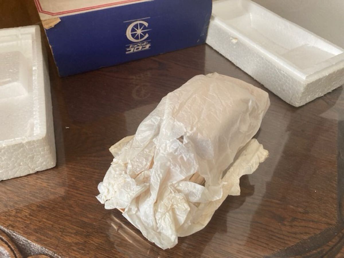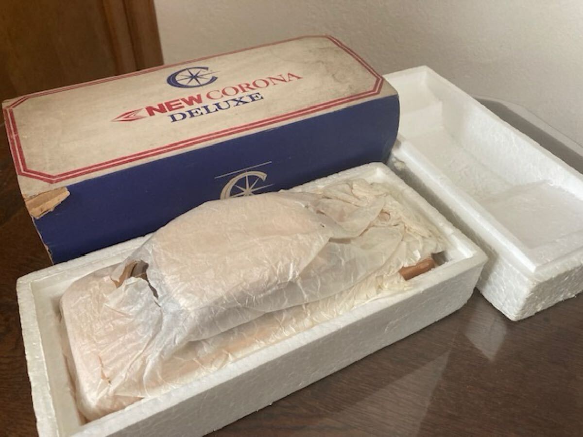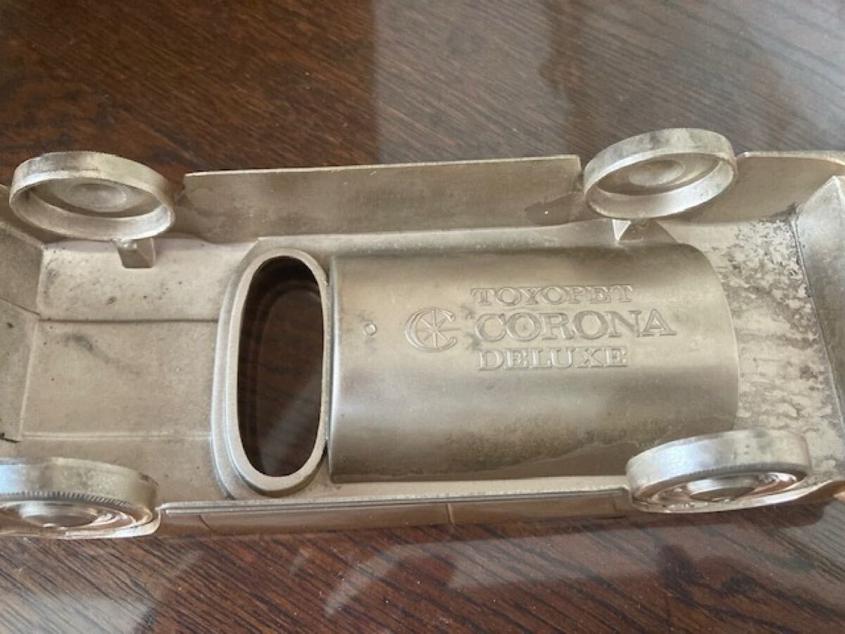 トヨペットコロナをモデルとした未使用のシガレットケースです。この型の新車発売は昭和45年8月だそうです。高度経済成長期のノベルティですので、なんか豪華です。たばこの灰皿を景品にしているので、現在とはまったく状況が違います。ノークレーム・ノーリターンでお願いします。