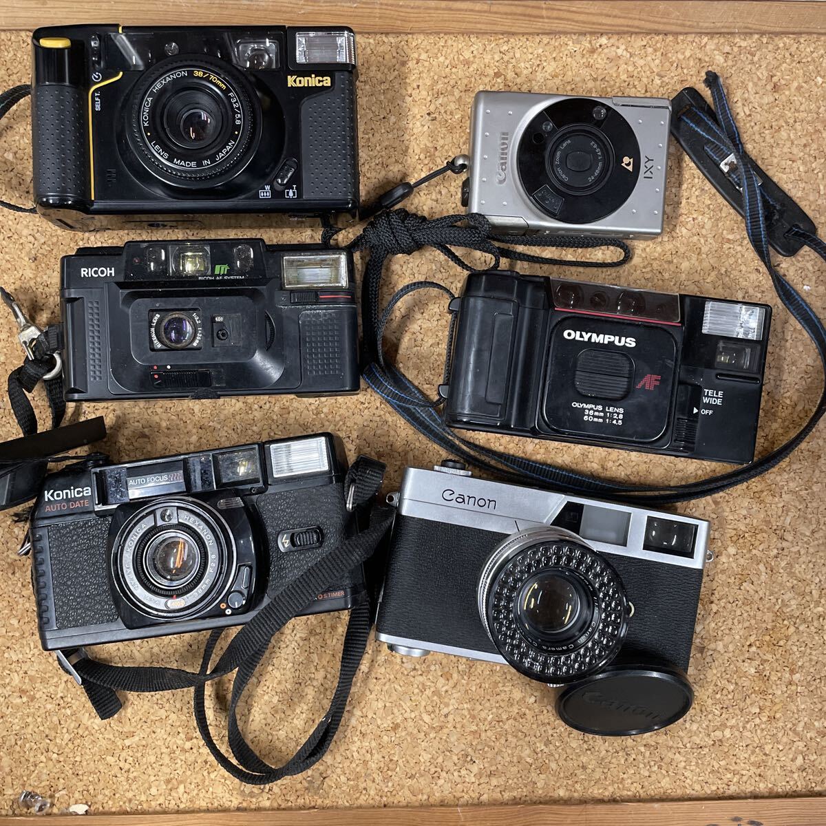 ジャンク カメラ まとめて Canon フィルムカメラ Konica OLYMPUS RICOH AFL-T ff-3 c35 MR70 IXY 6個セット