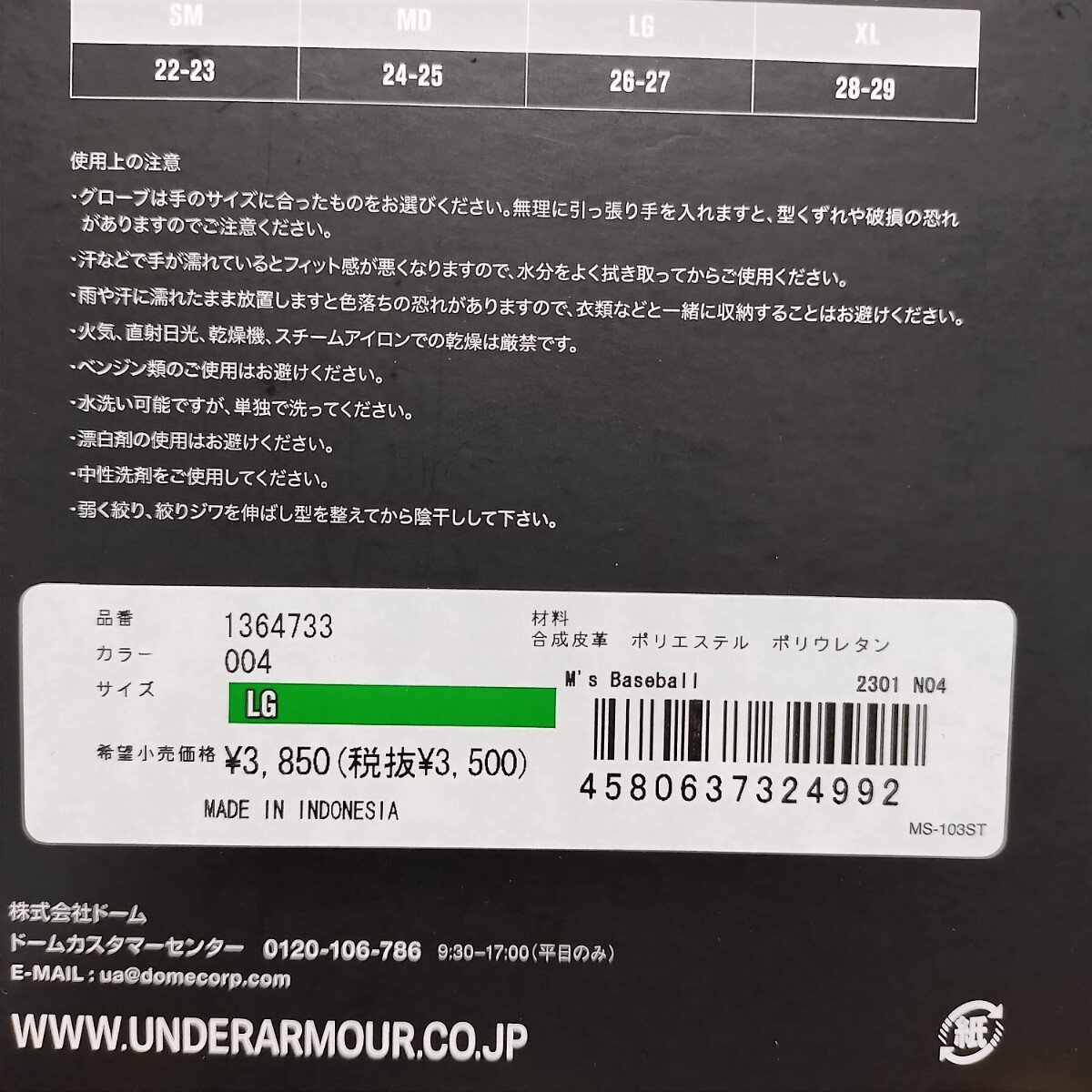 即決価格【消費税 送料すべて込み】現品限り【新品】アンダーアーマーバッティング手袋 ターコイズ Lサイズ