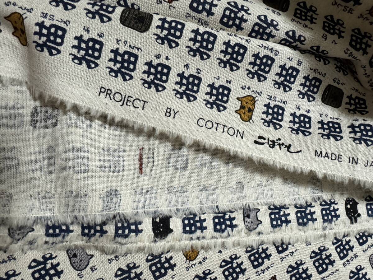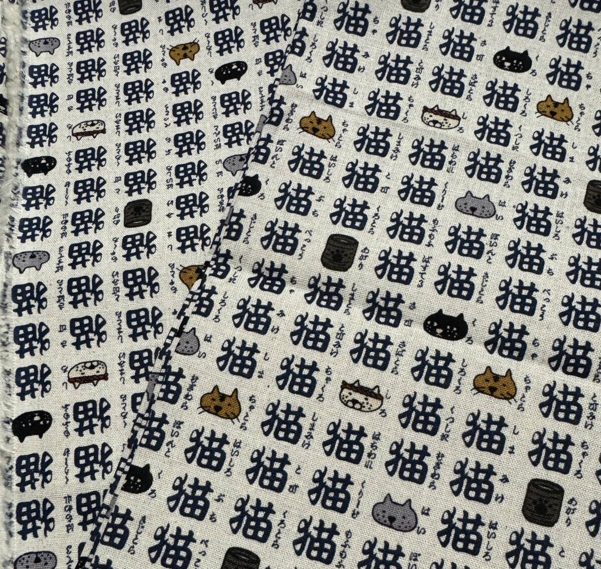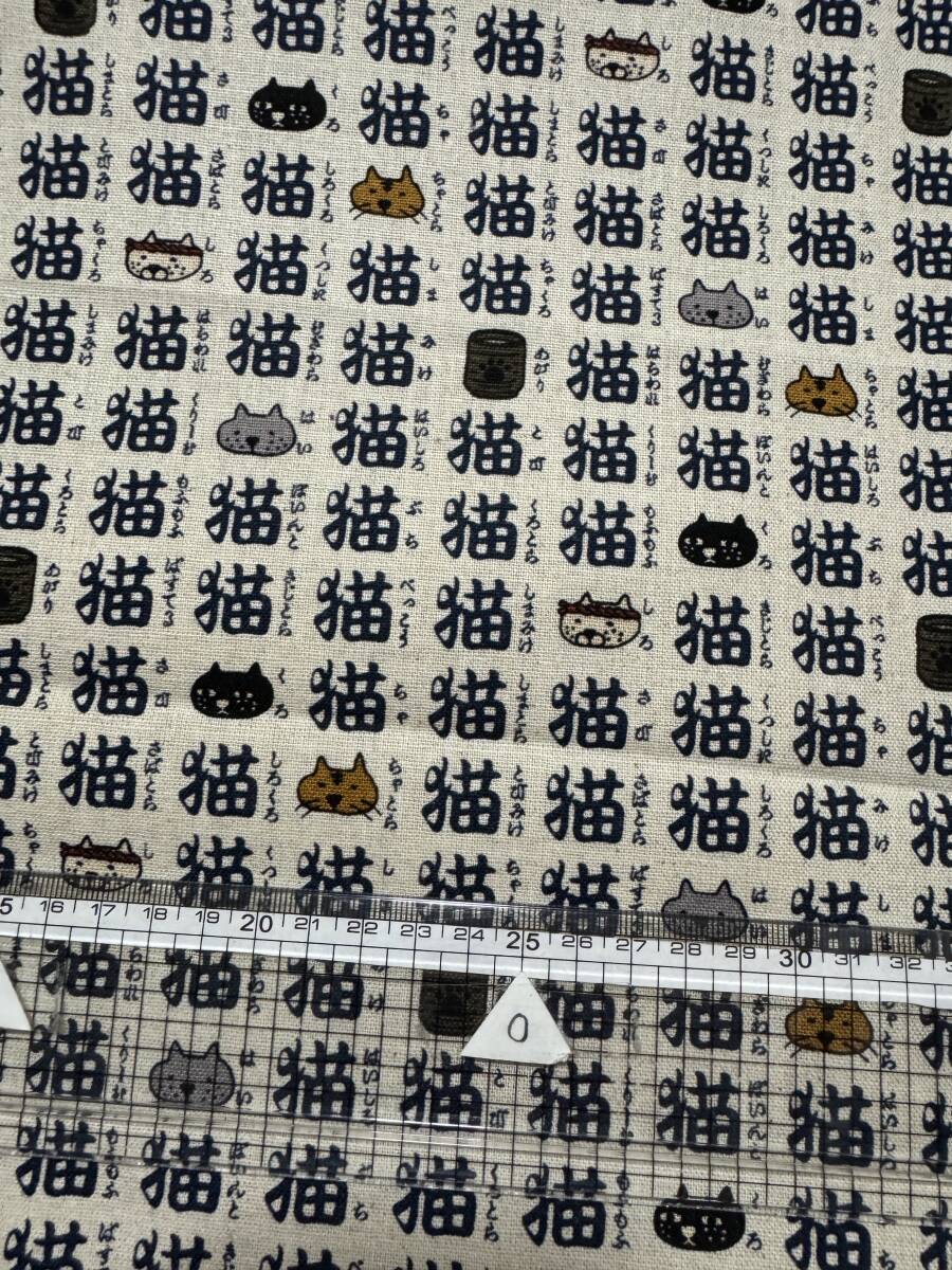 3.5m 綿麻キャンバス 110×350cm 猫 漢字 コットンこばやし / 生地 はぎれ 日本製 コットンリネン 綿85麻25 和風 WAGARA