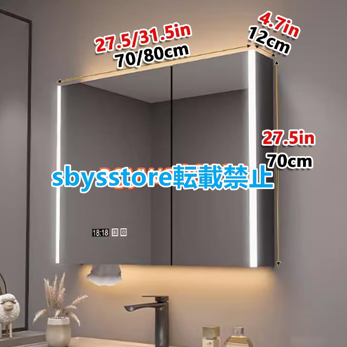 化粧台LEDライト付き 浴室お風呂 鏡スマート調光機能付き ミラーキャビネット ミラー洗面化粧台 ミラーキャビネットLEDライト付き 70cm