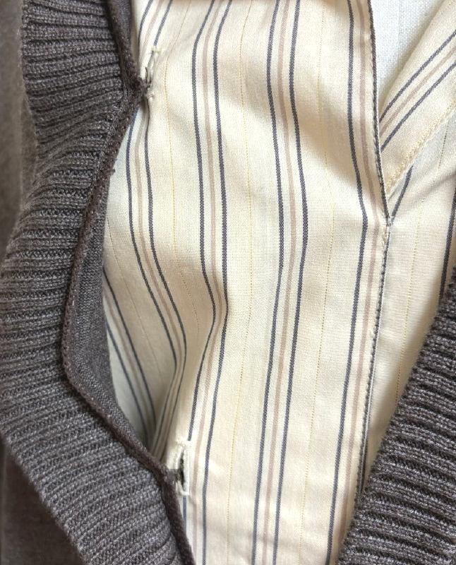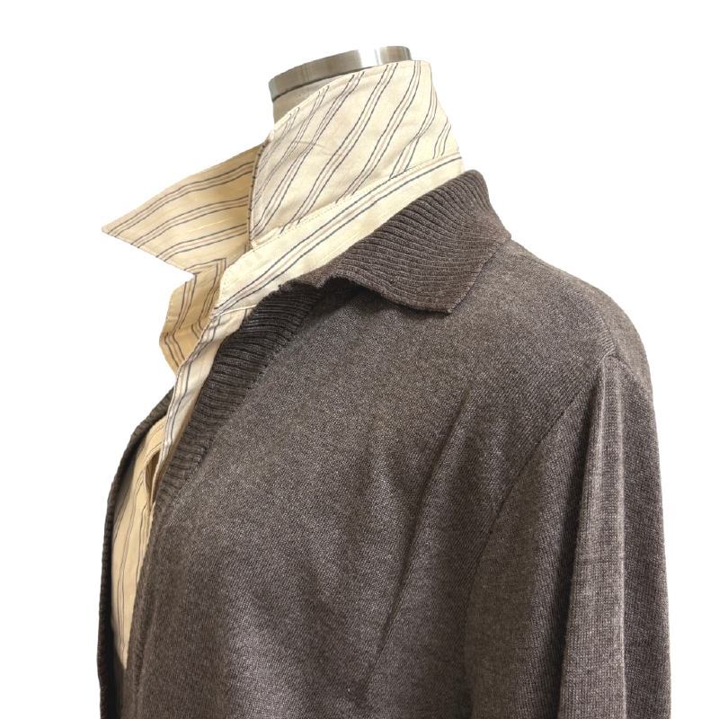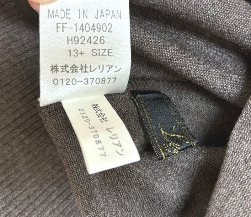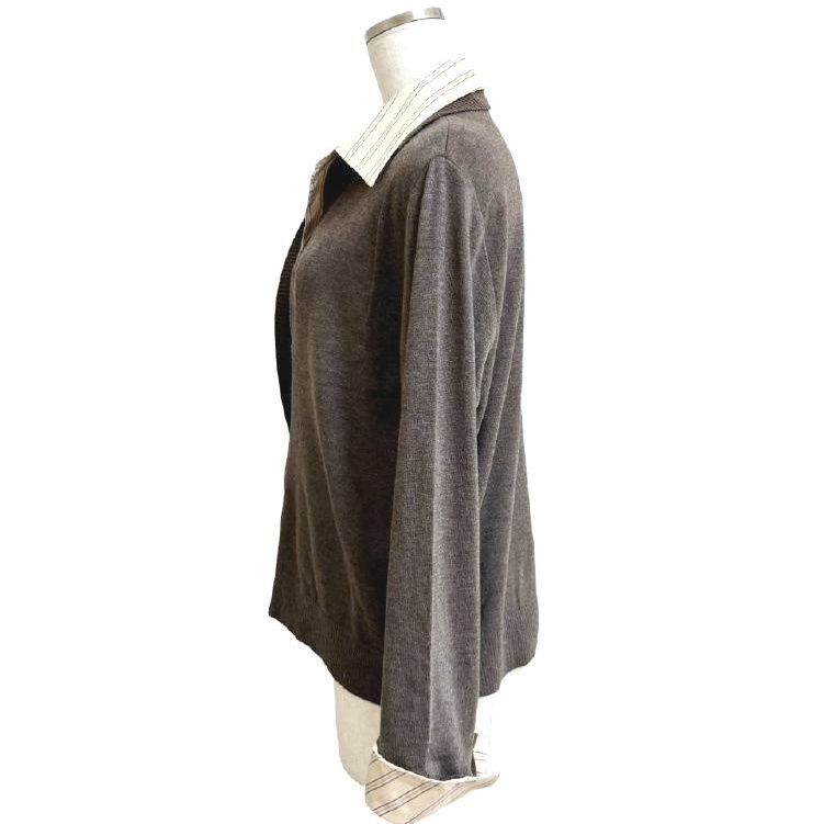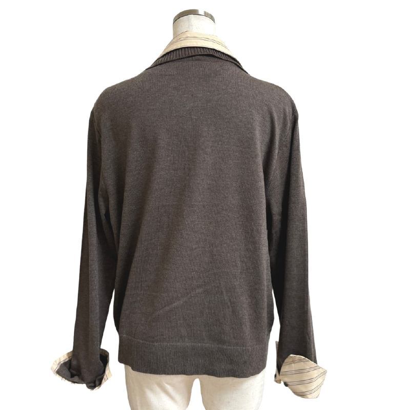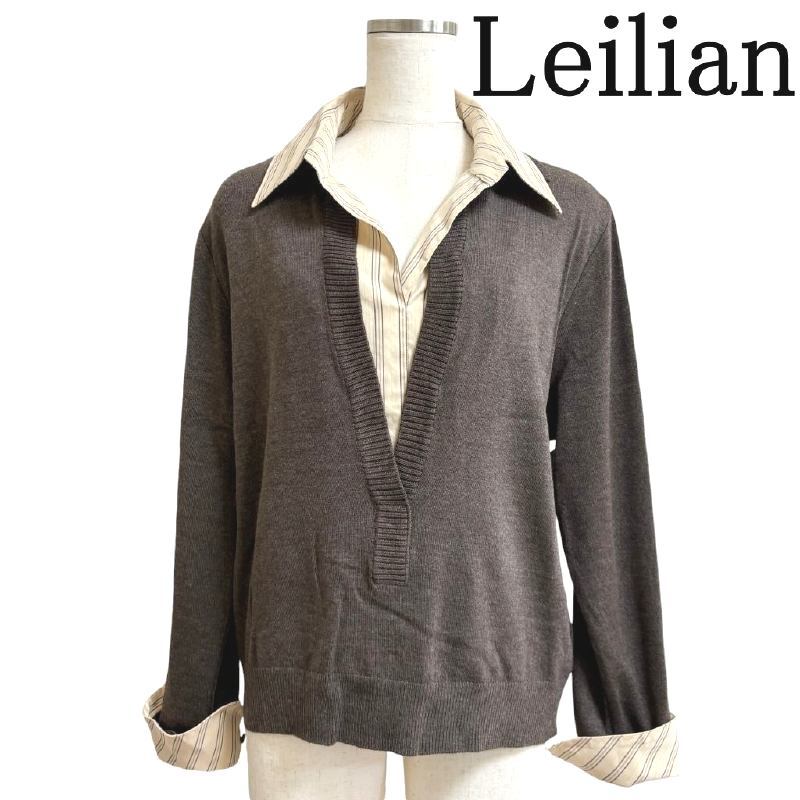 Leilian(レリアン)の襟カフス付き長袖セーター落ち着いたダークブラウンカラーがシックで上品な印象を与え、秋の装いにぴったりです。襟とカフスのデザインがクラシカルな雰囲気を引き立て、洗練された大人のスタイルを演出します。襟元はさりげなく華やかで、単品での着用はもちろん、ジャケットやコートのインナーとしてもアクセントになります。状態は非常に良好で、目立つ使用感や傷、汚れも一切なく新品同様の質感を保っています。秋のシーズンに活躍する一着として、日常使いからオフィスカジュアルまで幅広くお使いいただけます。前上がりのショート丈ニット。春、秋に活躍するニット素材です。マルチストライプの襟とカフスは取り外し可能。透け感なし。◆サイズ◆13号 肩幅46 バスト120 袖丈60 袖幅16 着丈53 ◆素材◆画像参照