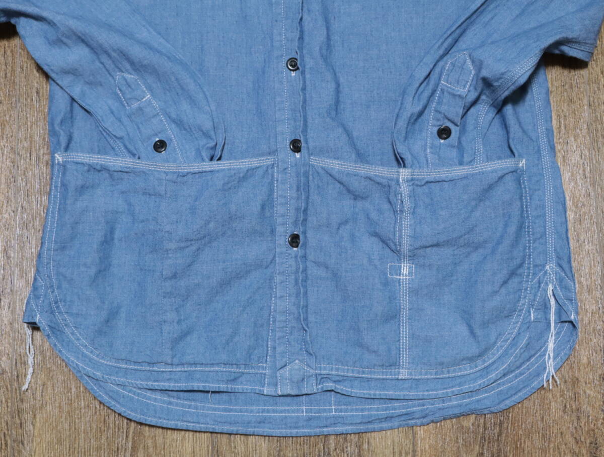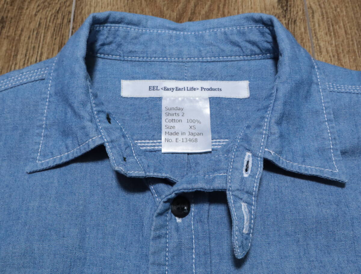 ■EEL イール■Sunday Shirts 2 サンデー シャツ■メンズ XS ブルー シャンブレー 長袖 日本製 エプロンポケット■ワーク アメカジ