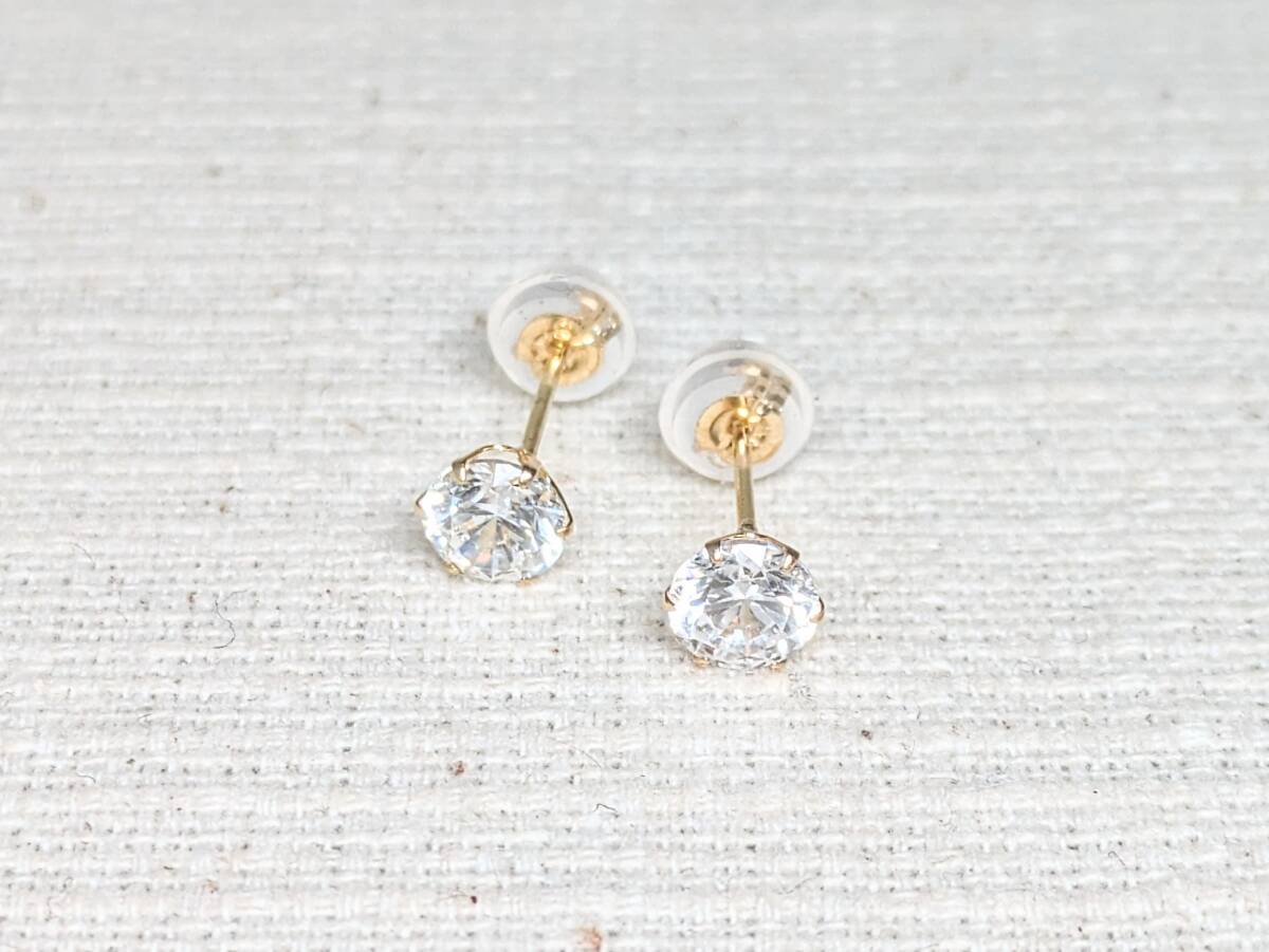 《宝商店》 スーパーキュービックジルコニア ゴールド K18 スタッドピアス 5ミリ 定番