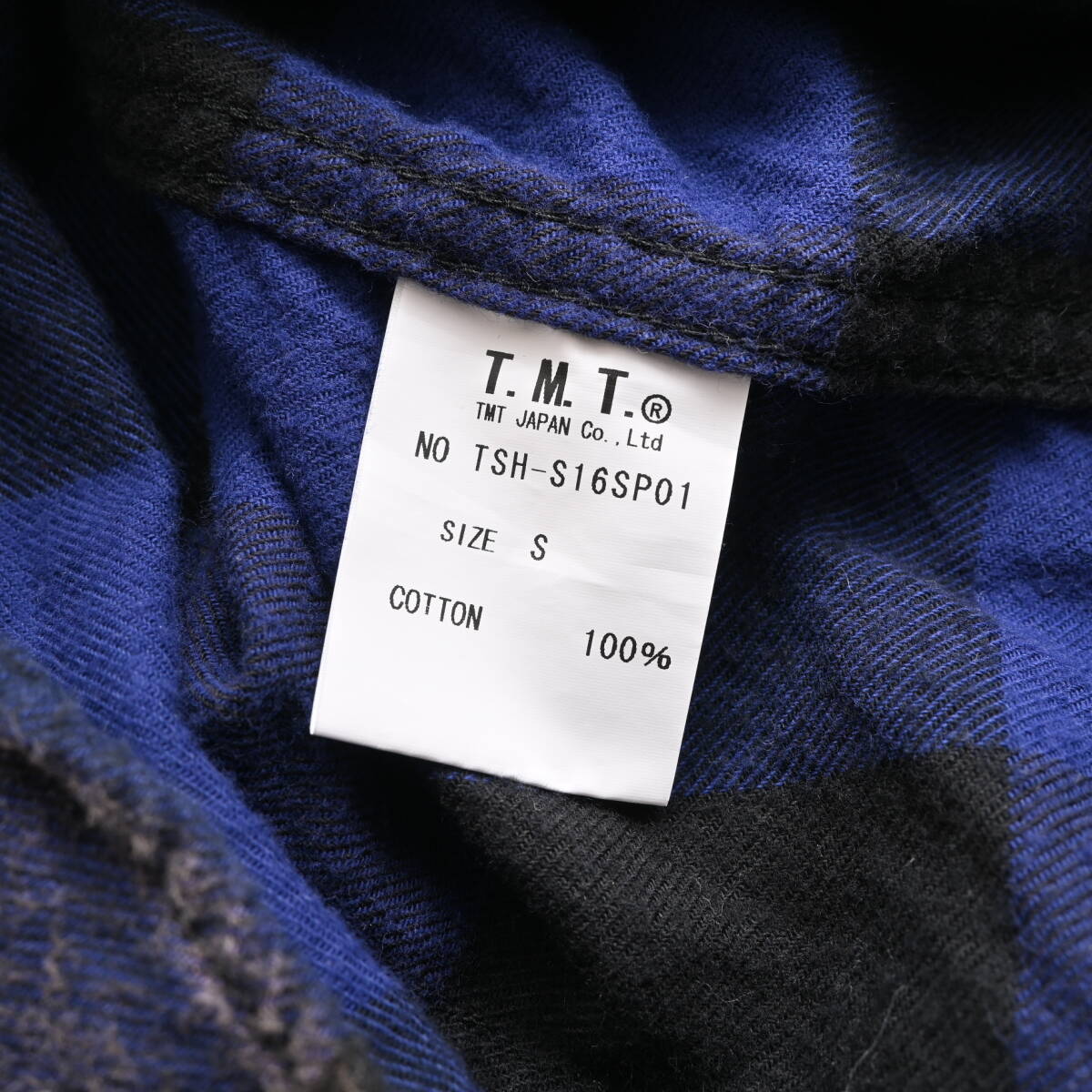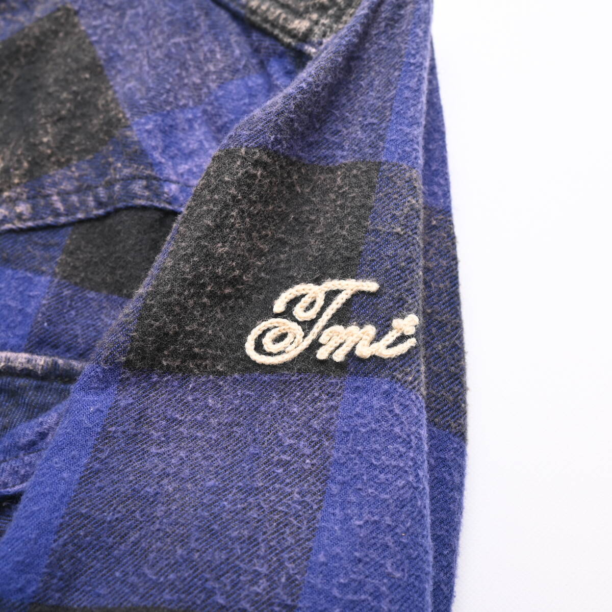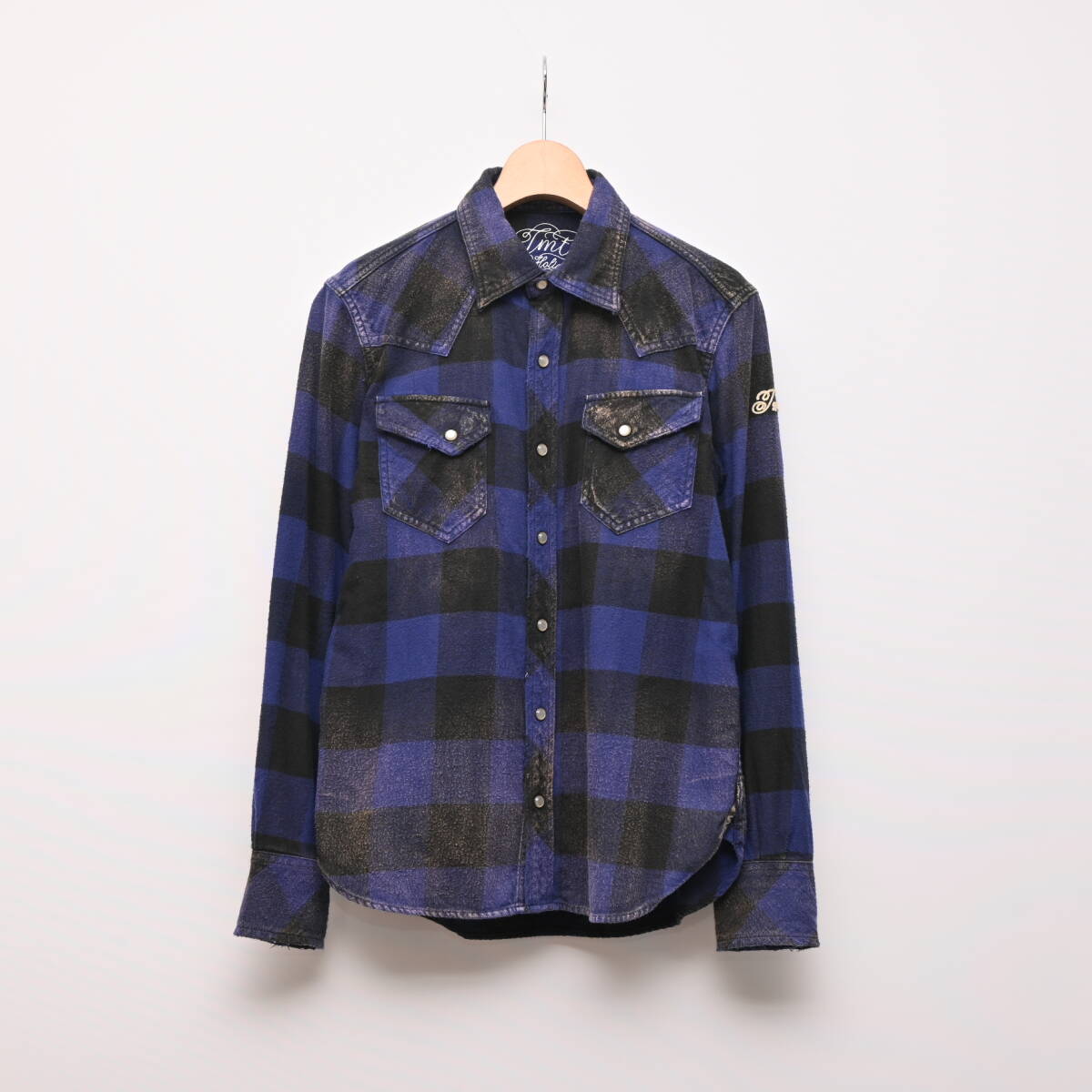 TMT 加工 バッファローチェック シャツ S ブルー 青 長袖 ロゴ 刺繍 ネルシャツ ティーエムティー DA5325