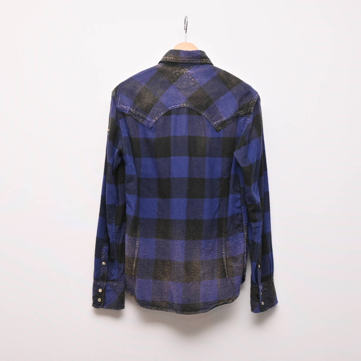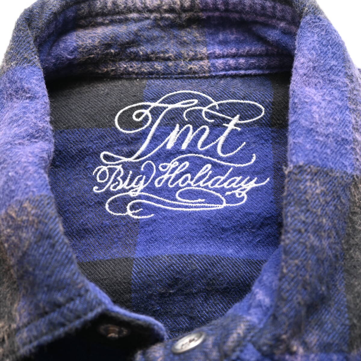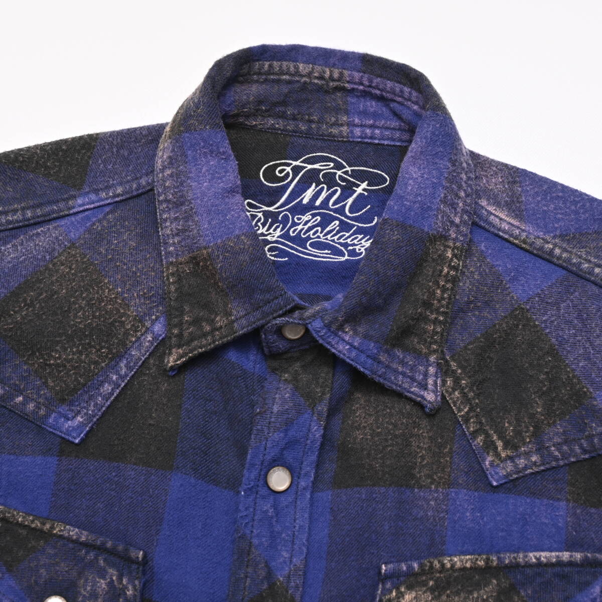 TMT 加工 バッファローチェック シャツ S ブルー 青 長袖 ロゴ 刺繍 ネルシャツ ティーエムティー DA5325