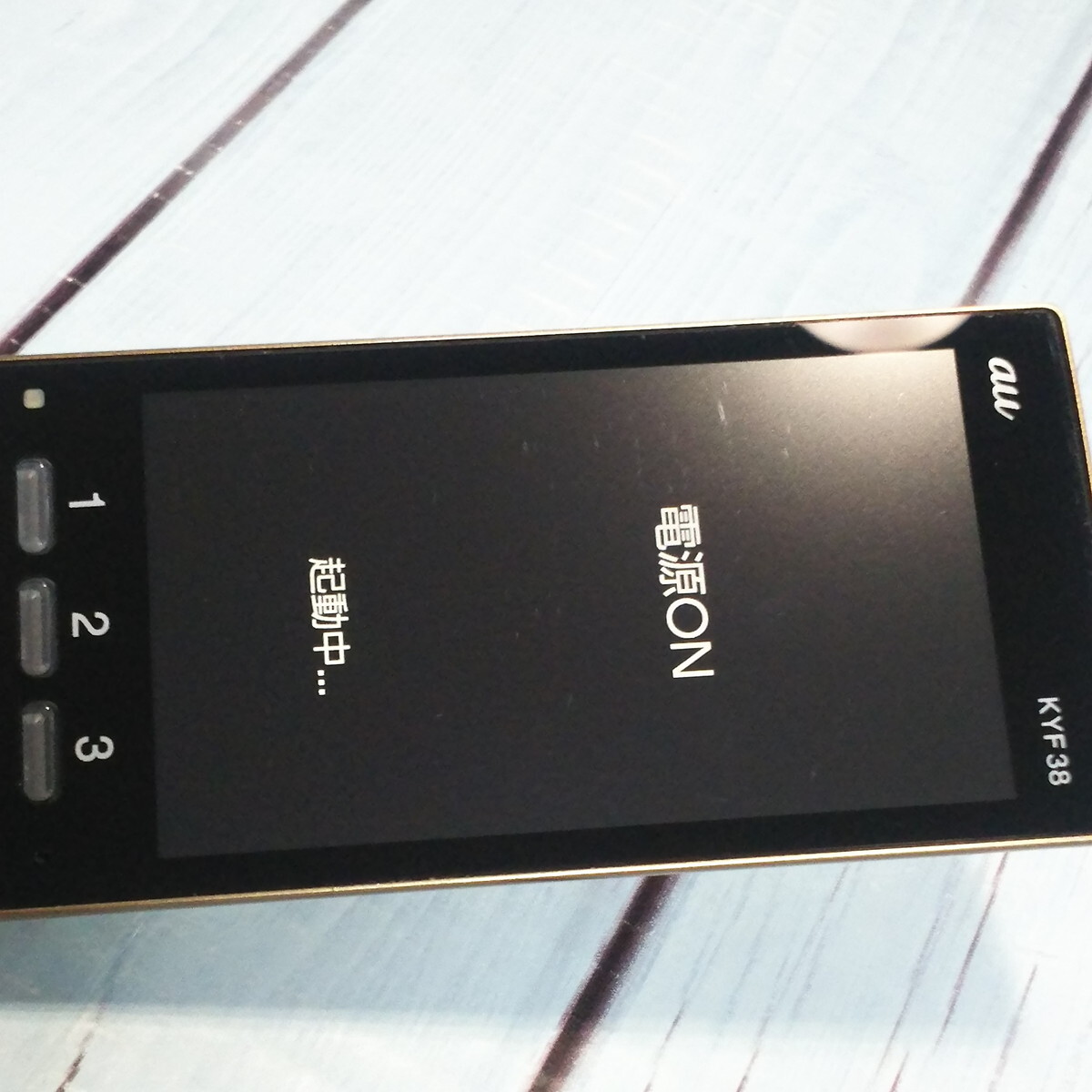 au 京セラ かんたんケータイ KYF38 シャンパンゴールド 本体 白ロム SIMロック解除済み SIMフリー C968950