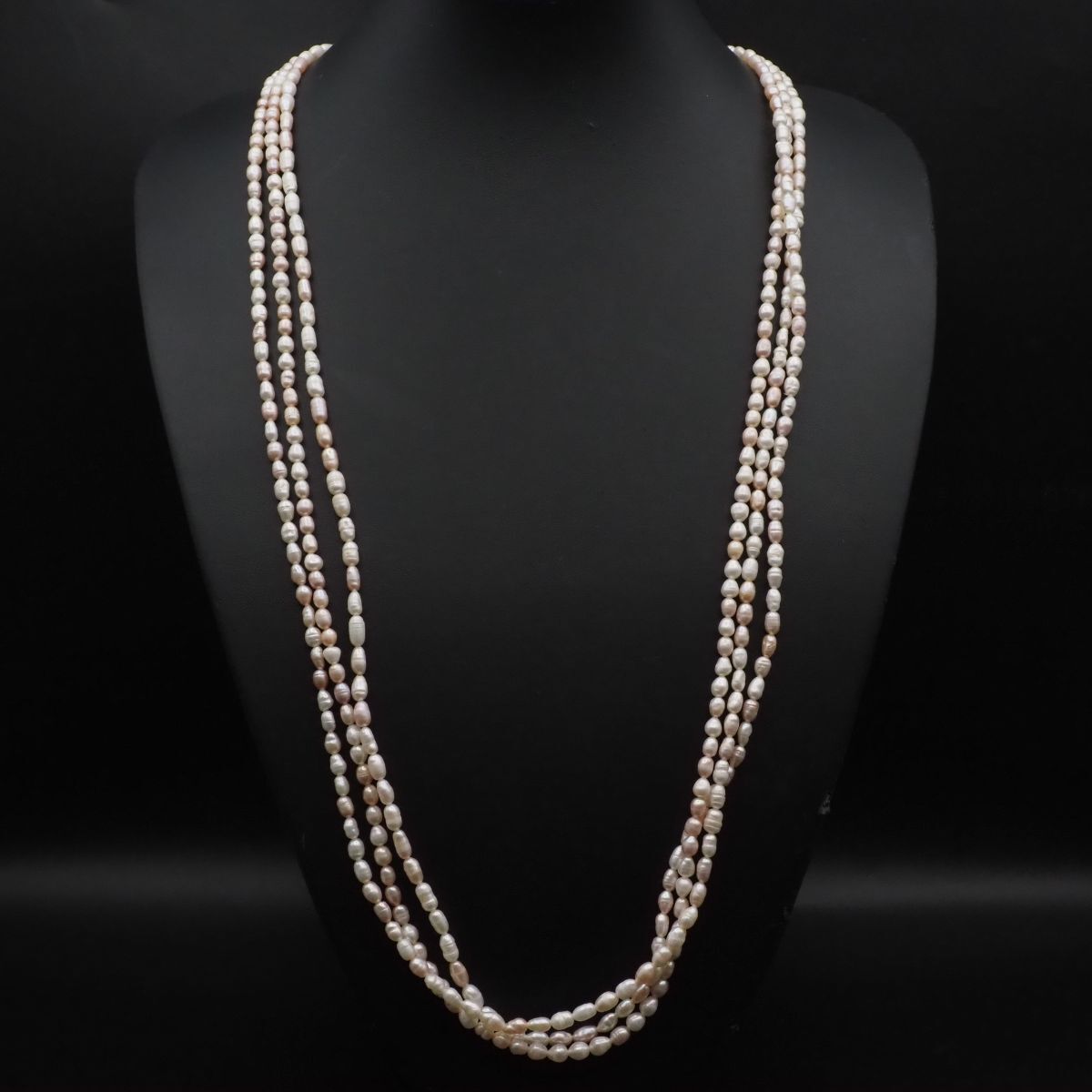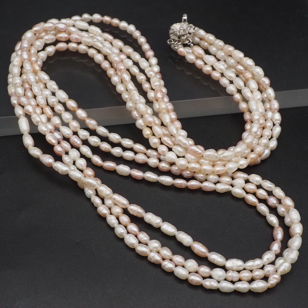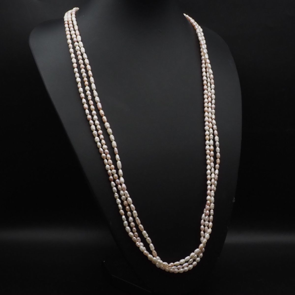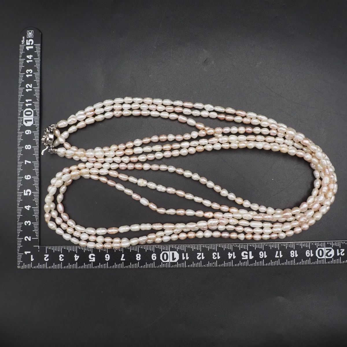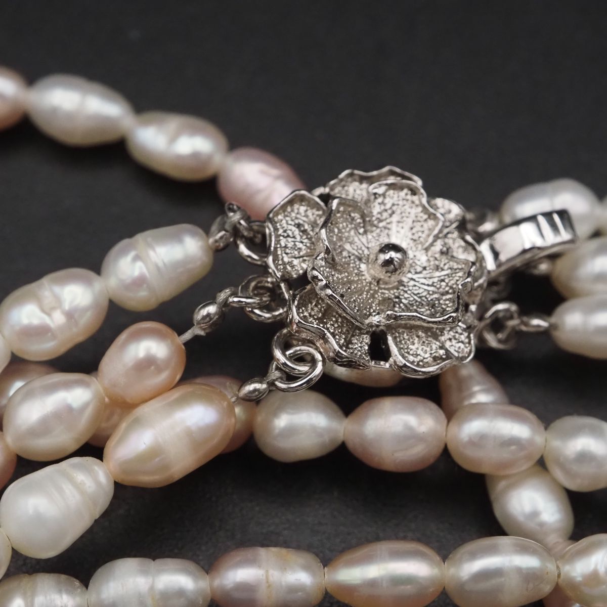 F126 淡水真珠 パール SILVER刻印 ネックレス 3連 ミックスカラー デザイン シルバー 6月誕生石
