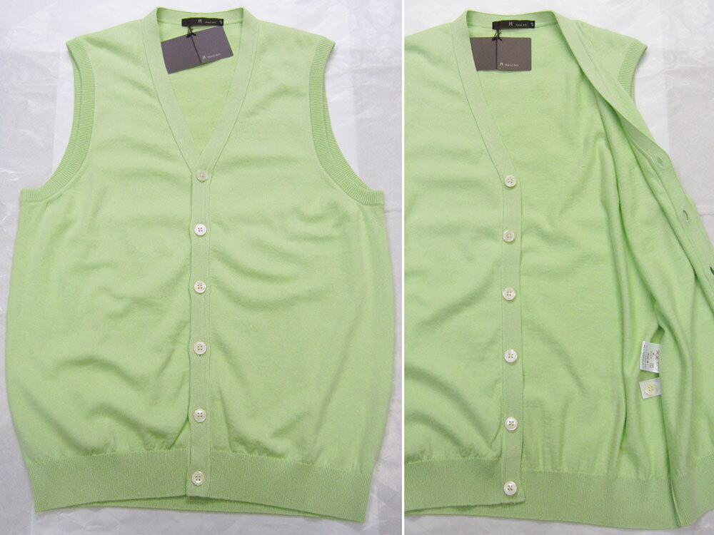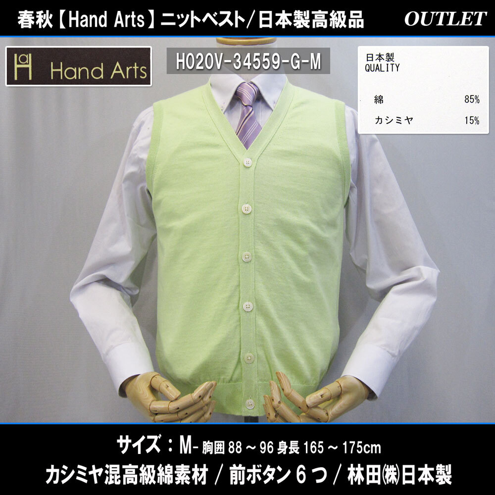 | 品名 | H020【HandArts】日本製メンズニットベスト/M/グリーン/コットンカシミヤ素材/前開き6釦/ゴルフに/差し色に/林田㈱/アウトレット |