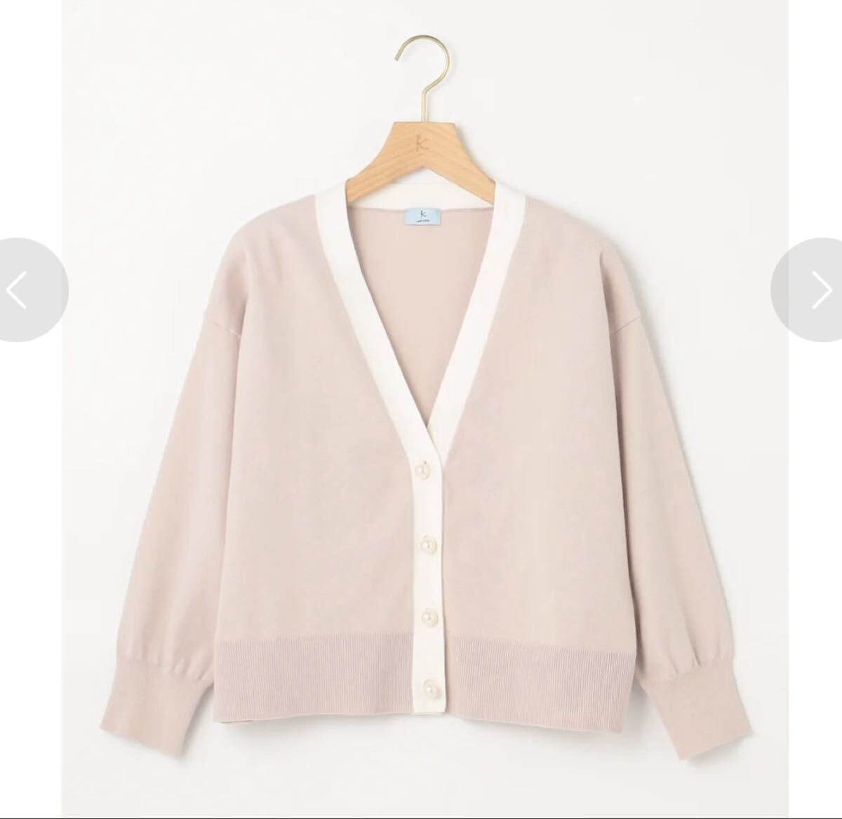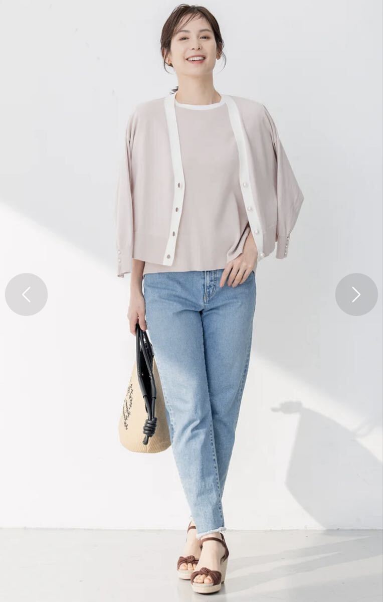 配色デザインがモダンに映えるカーデガンは、大きめのパール釦がさらに華やかさをプラスし、アクセントになっています。コンパクトな丈感、少しゆとりのある身幅感がスタイリングしやすくなっています。また、ボディラインをカバーしつつ華奢な印象に見せてくれるのも嬉しいポイント。袖口の釦は開閉できるので中に着たインナーの袖口をあえて見せるスタイリングもおすすめです。ジャケット感覚で羽織れ、着回し力も高い、オン・オフとシーンを問わず活躍してくれます。